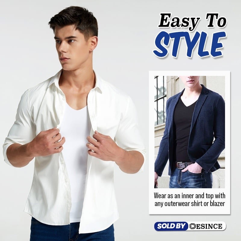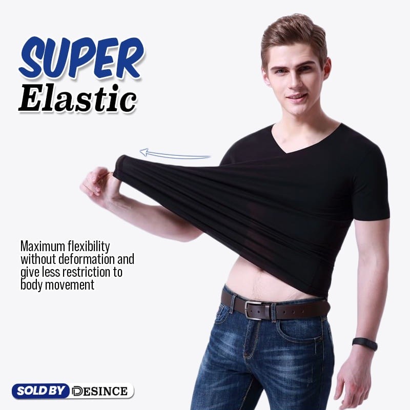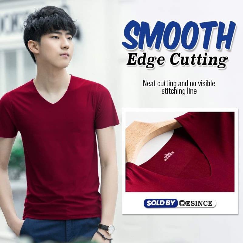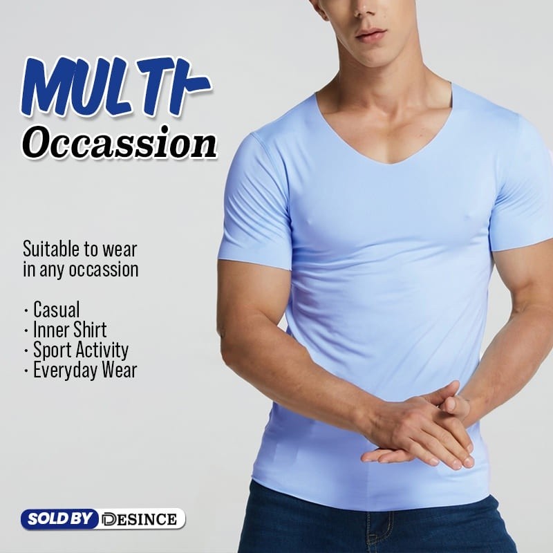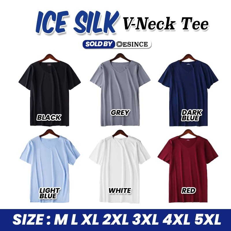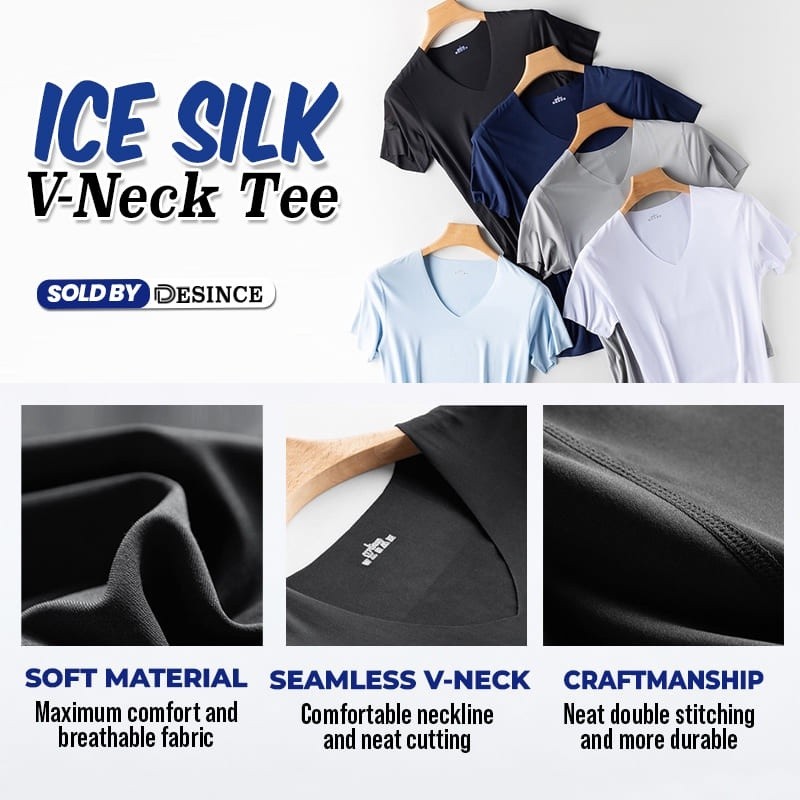 [Local] Men Ice Silk T-shirt Short Sleeve V-neck Tees Cooling Seamless Inner T-Shirt Sejuk Lelaki