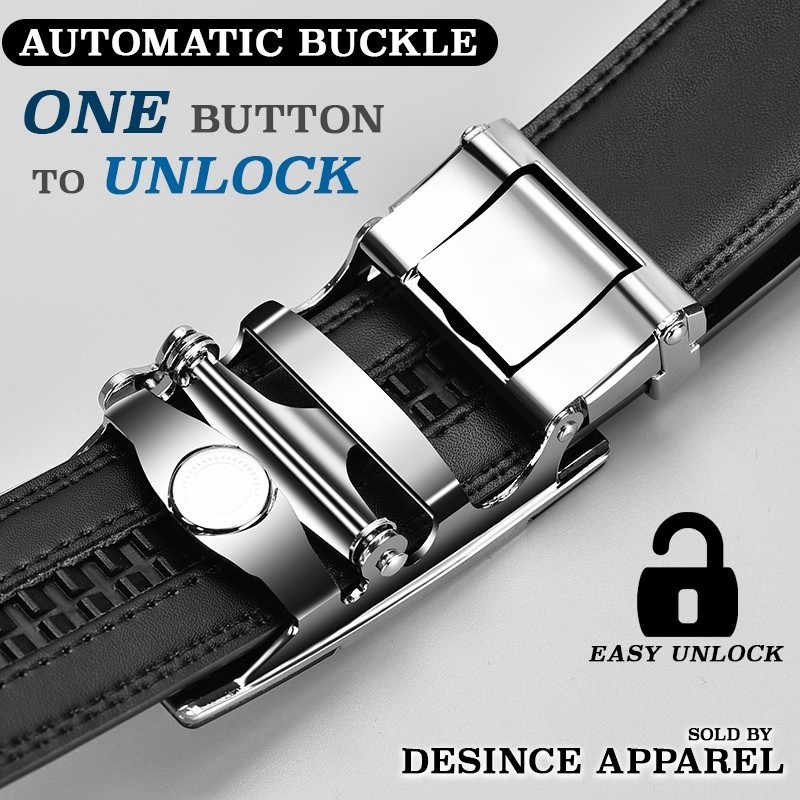 [Local] Men Leather Belt 120cm Automatic Buckle Belts Formal Tali Pinggang Kulit Lelaki MA 100