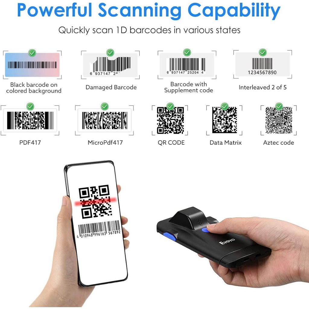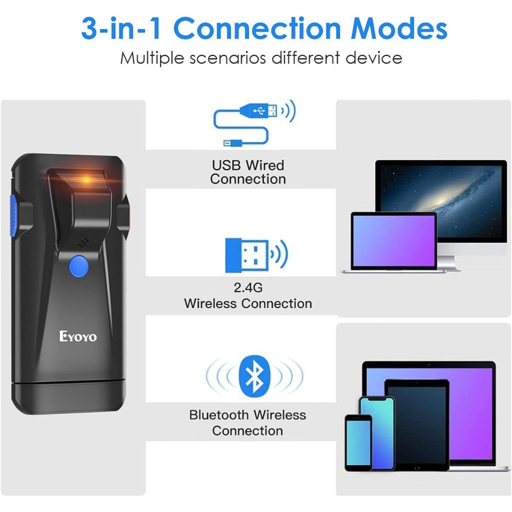 [Local stock]Auto-sensing Eyoyo Mini EY-024 Wireless 1D 2D QR Bluetooth Barcode Scanner Reader Clip On Scanner