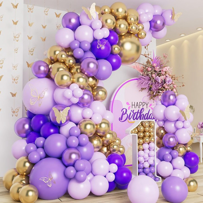 【Local Stock】Balloon Garland Arch Happy Birthday Party Decoration Set Purple Butterfly Macaroon Belon Valentine Wedding Graduation Party Decor
