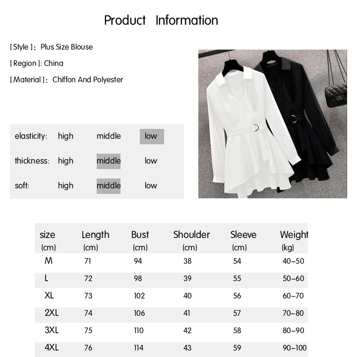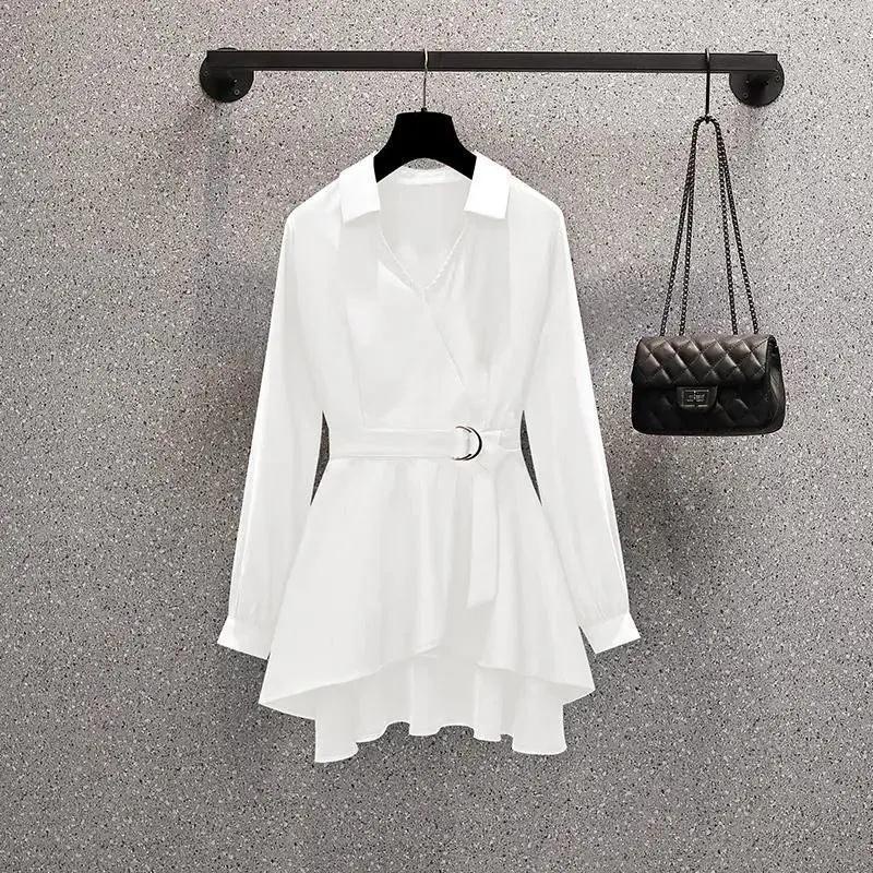 [Local Stock] Chiffon Blouse Plus Size Women Korean Style Slimmer Look Baju Kemeja Perempuan