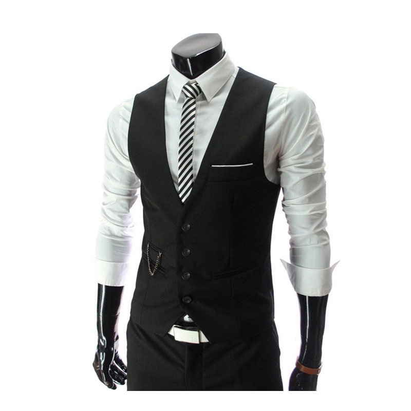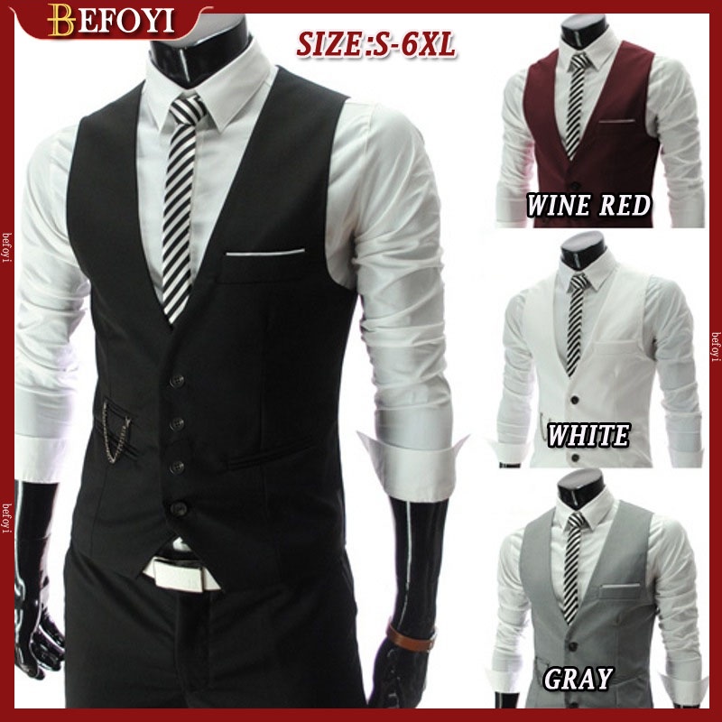 【LOCAL STOCK】Men Vest Suit Formal Korean Black Grey Business Thin Slim Fit Office Vest For Men Plus Size Waistcoat Lelaki XY7412