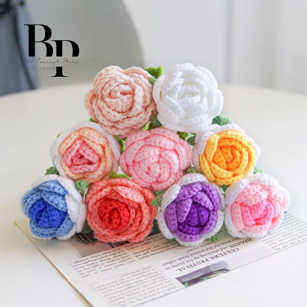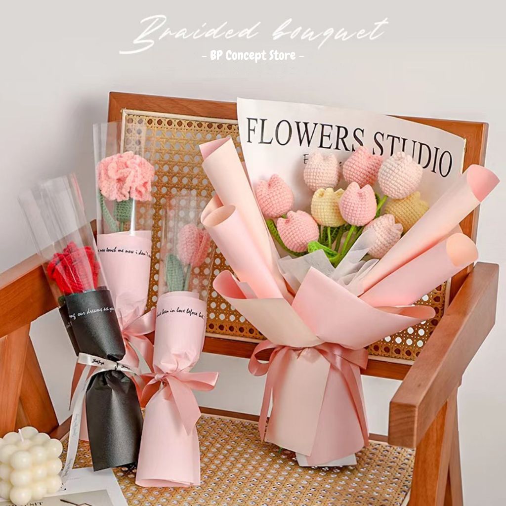 【LocalDelivery】Hand Woven Flowers Knitted Flower Graduation Gift Hand Crochet Flower Preserve FreshFlower decor 针织花