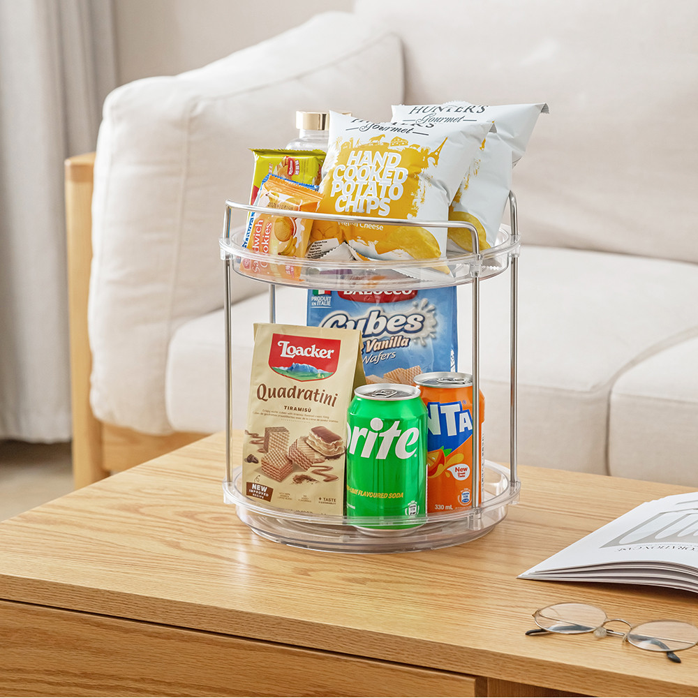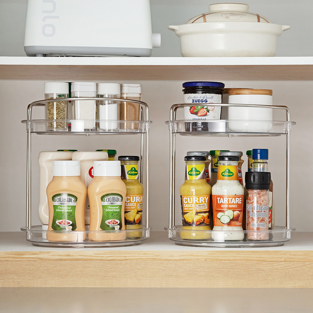 Locaupin 2 Tier Spinning Tray for Fruit,Cabinet,Pantry, Decorative Tiered Trays for Countertop,Organizer for Spices