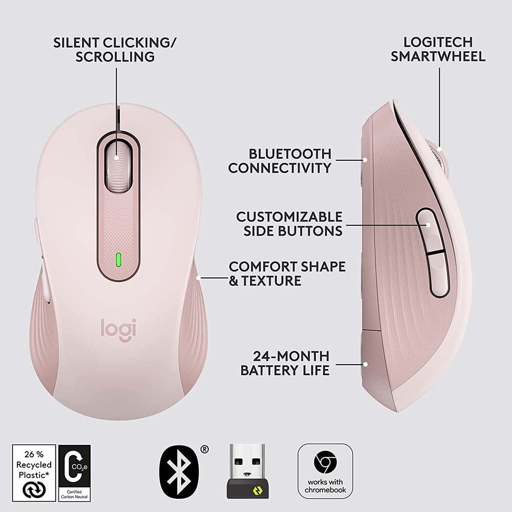 Logitech Signature M650 Wireless Mouse with Silent clicks, customizable side buttons ,Small Medium Hand -Bluetooth Mouse