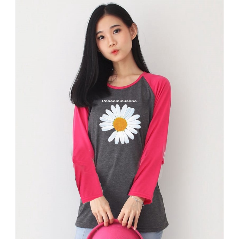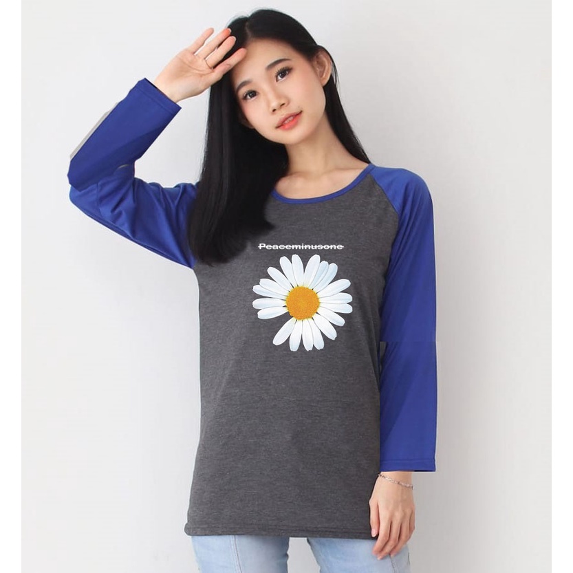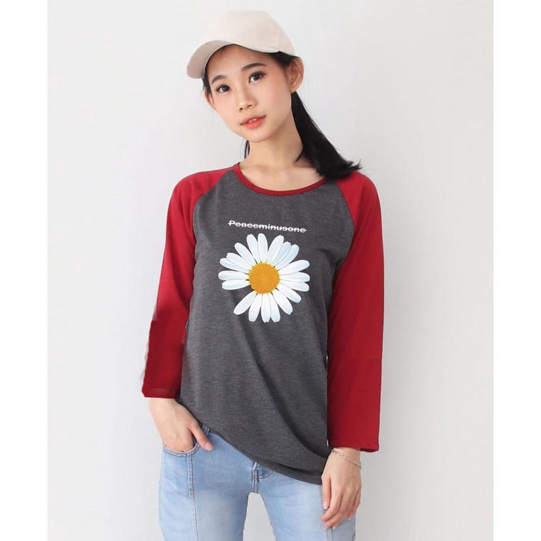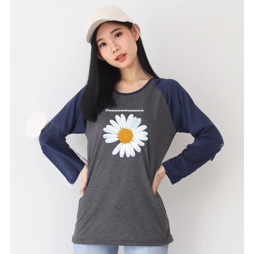 Long Sleeve Dark Gray Raglan T-shirt with Floral Print