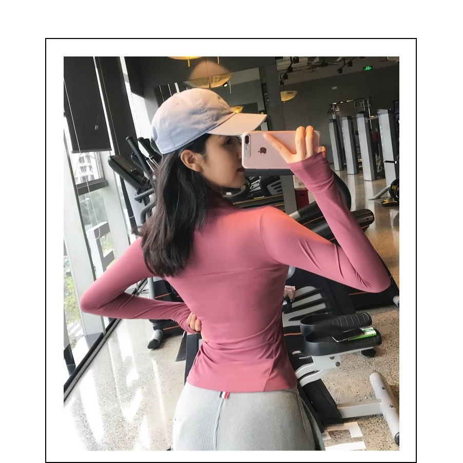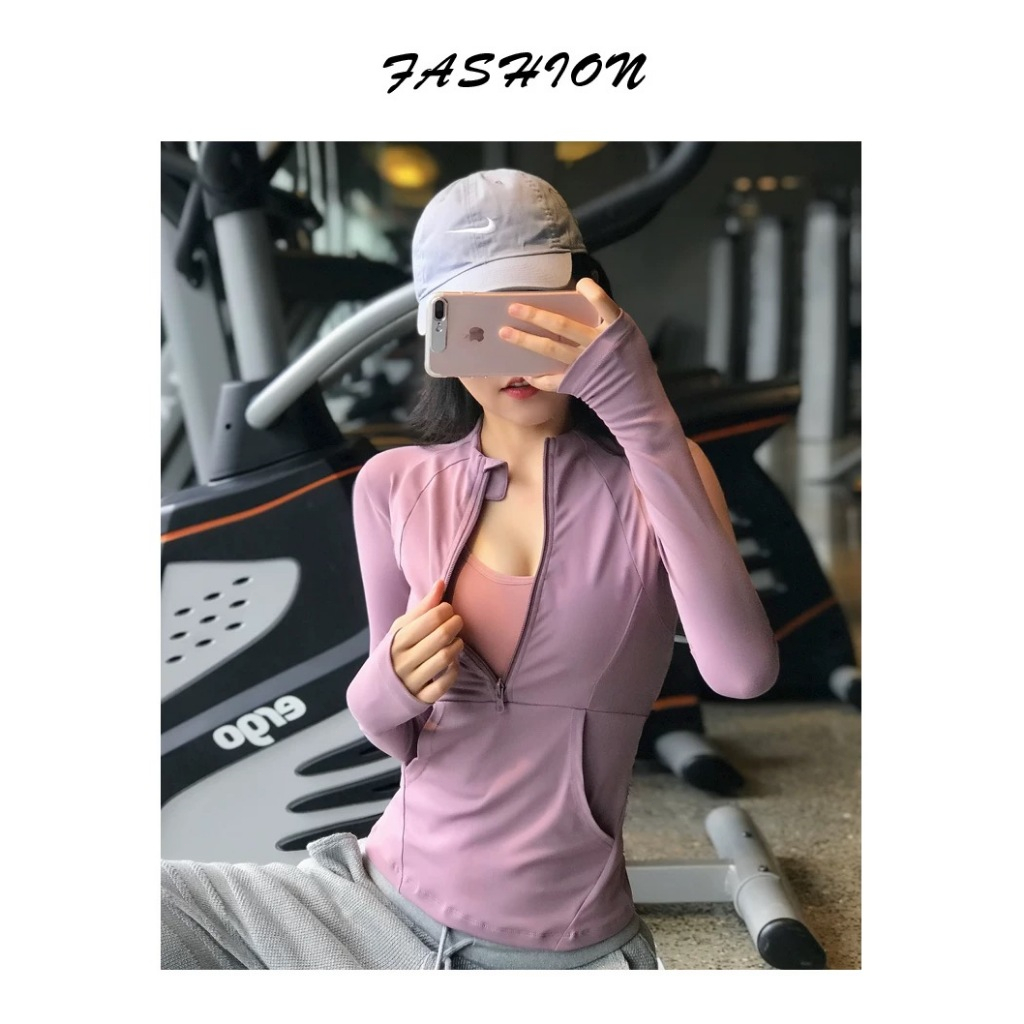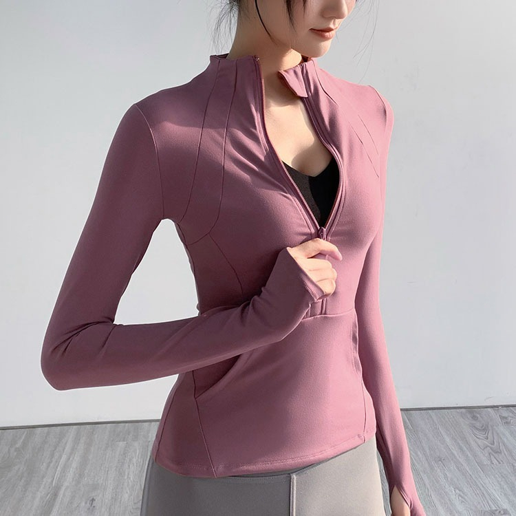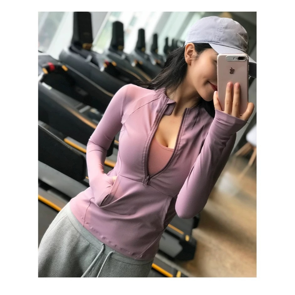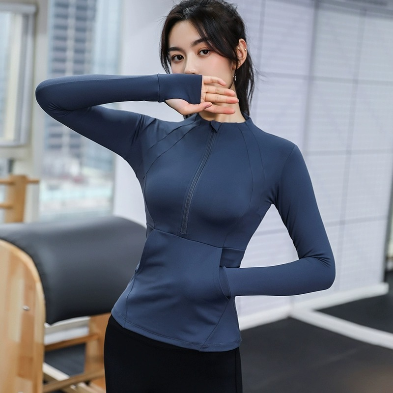 Long Sleeve Yoga Top Zipper Fitness Running Tops with Pocket Sports Jacket Workout Clothes for Running Sports