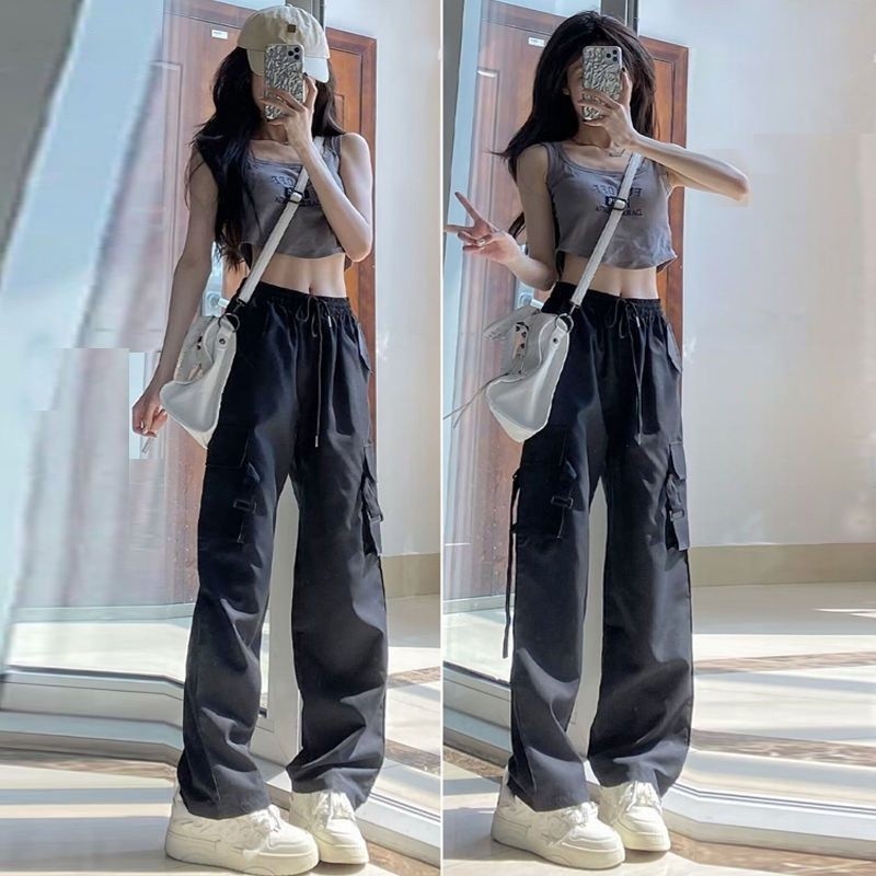 ?LOTDD?[ready stock in Malaysia] Cargo pants women seluar perempuan seluar cargo perempuan cargo pants women dopamine streetwear vintage sport casual baggy straight cut plus size outdoor multi pockets high waist ladies woman long trousers cargo pa