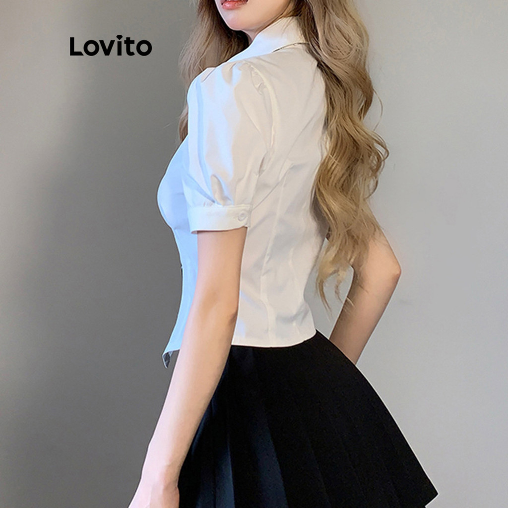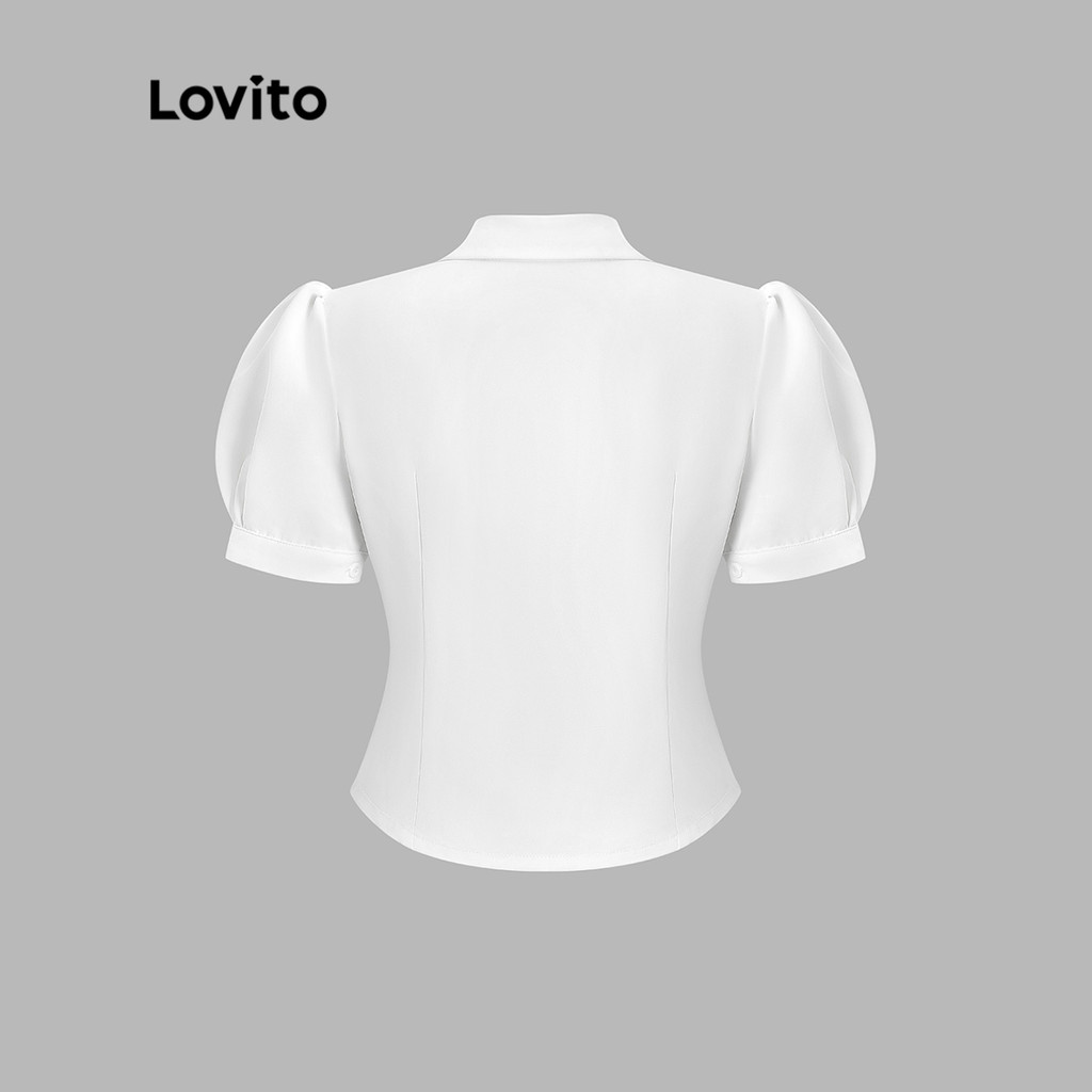 Lovito Casual Blouse Plain Button Y2K Puff Sleeve Blouse for Women L52AD035 (White)