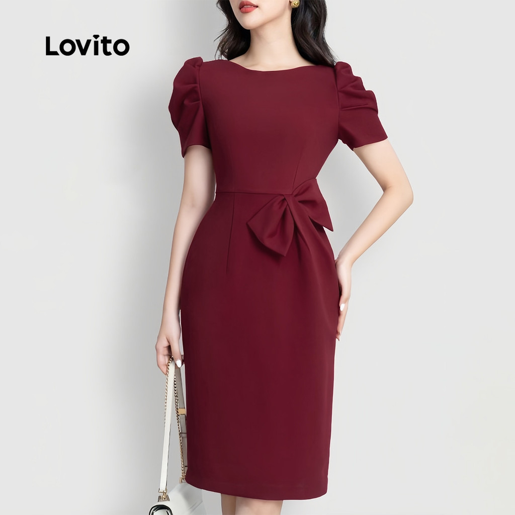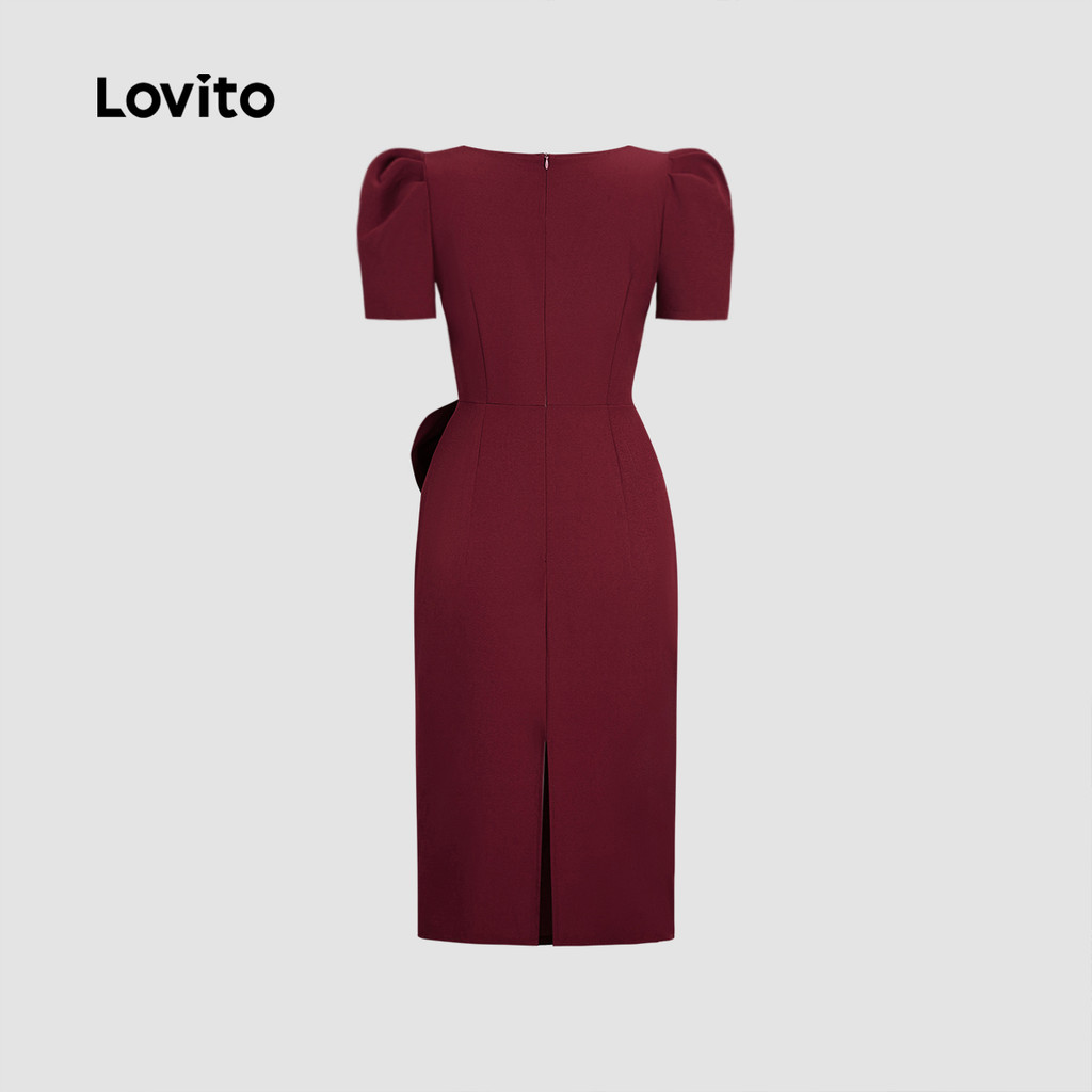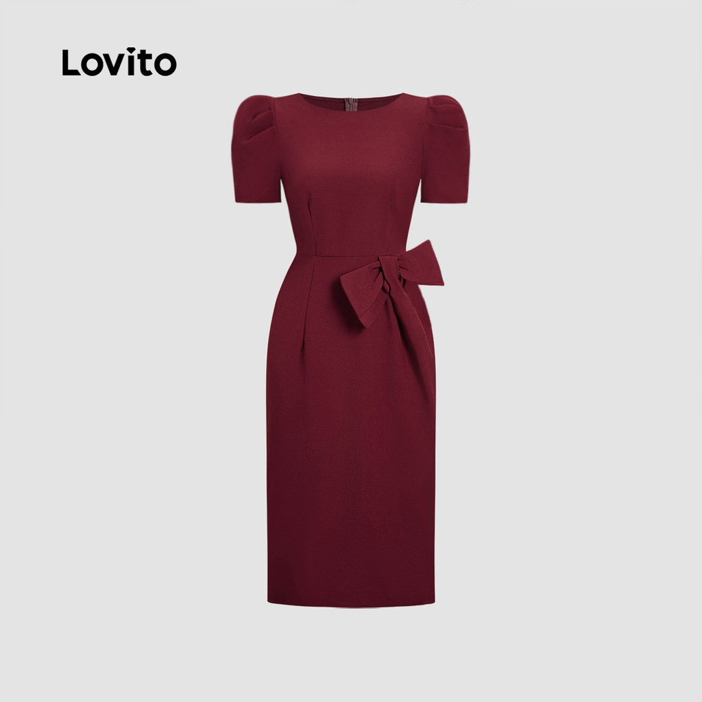 Lovito Elegant Dress New Year Bow Spring/summer Claret Dress for Women L158AD147 Lovito Pakaian Elegan Tahun Baru Bow Musim Bunga/musim Panas Pakaian Klaret Untuk Wanita L158AD147