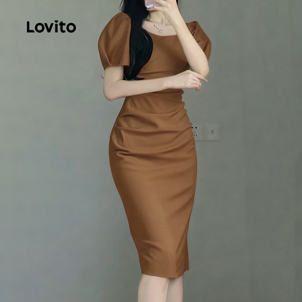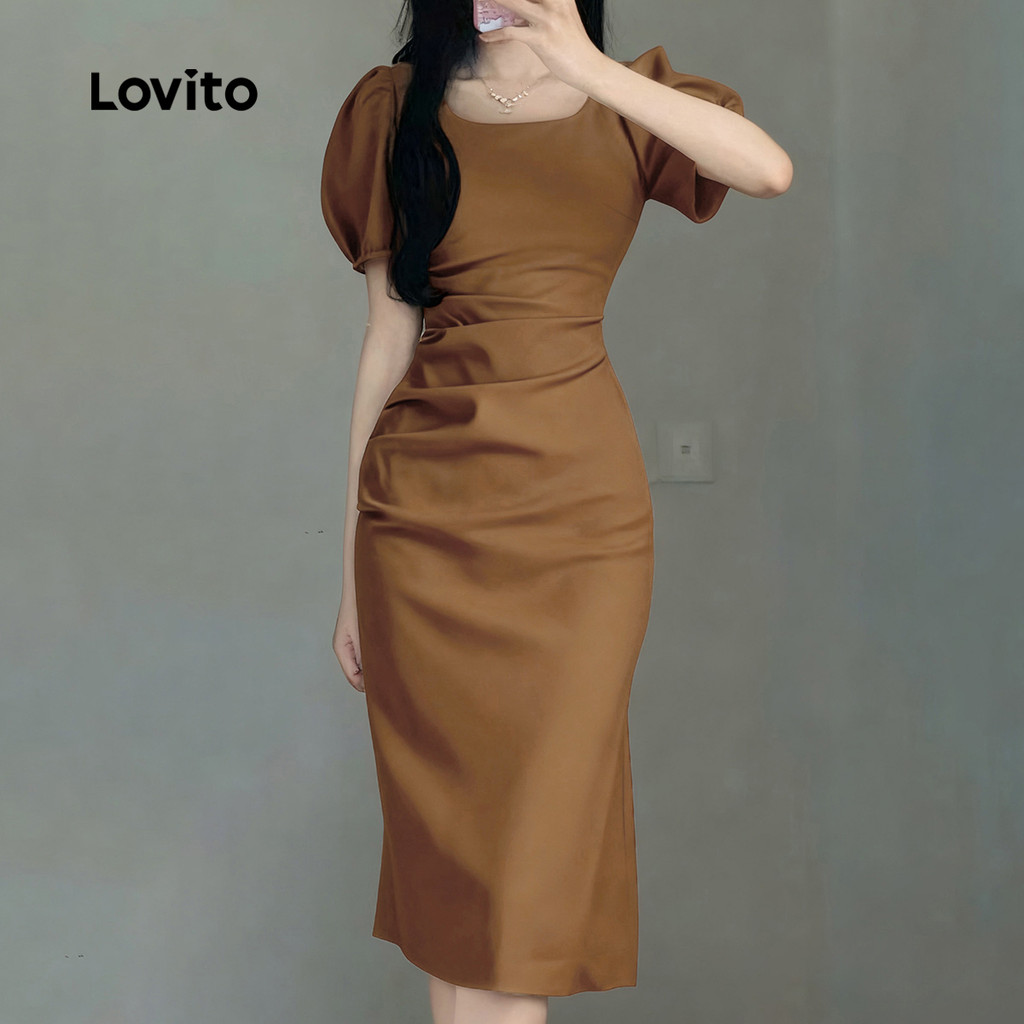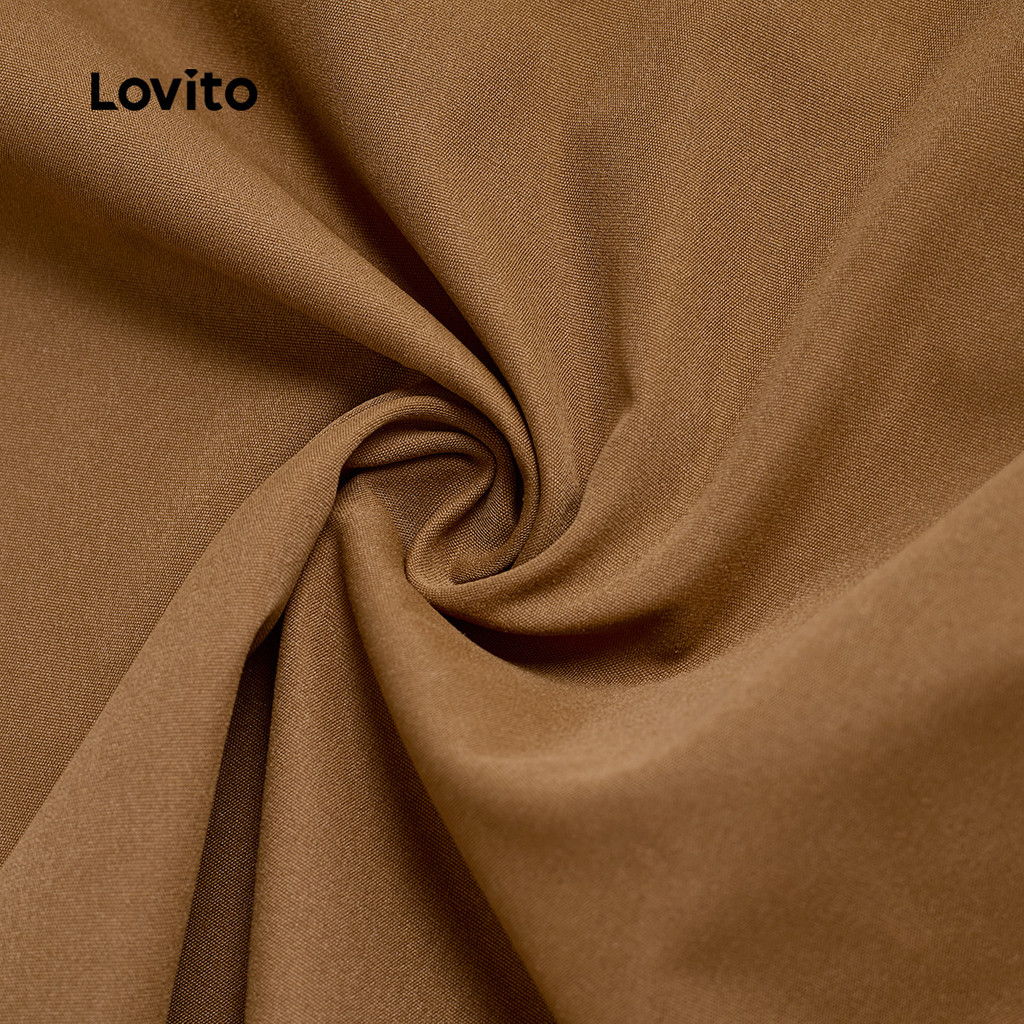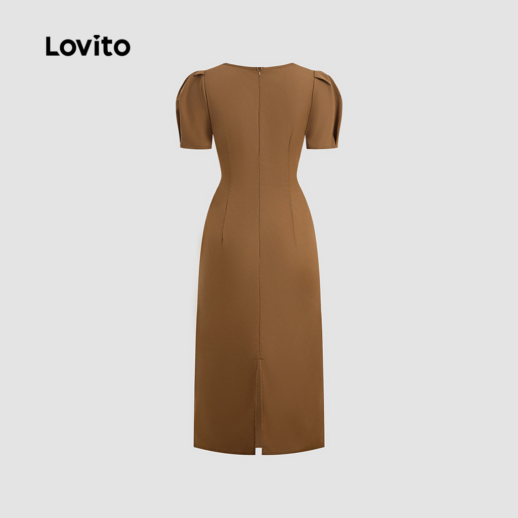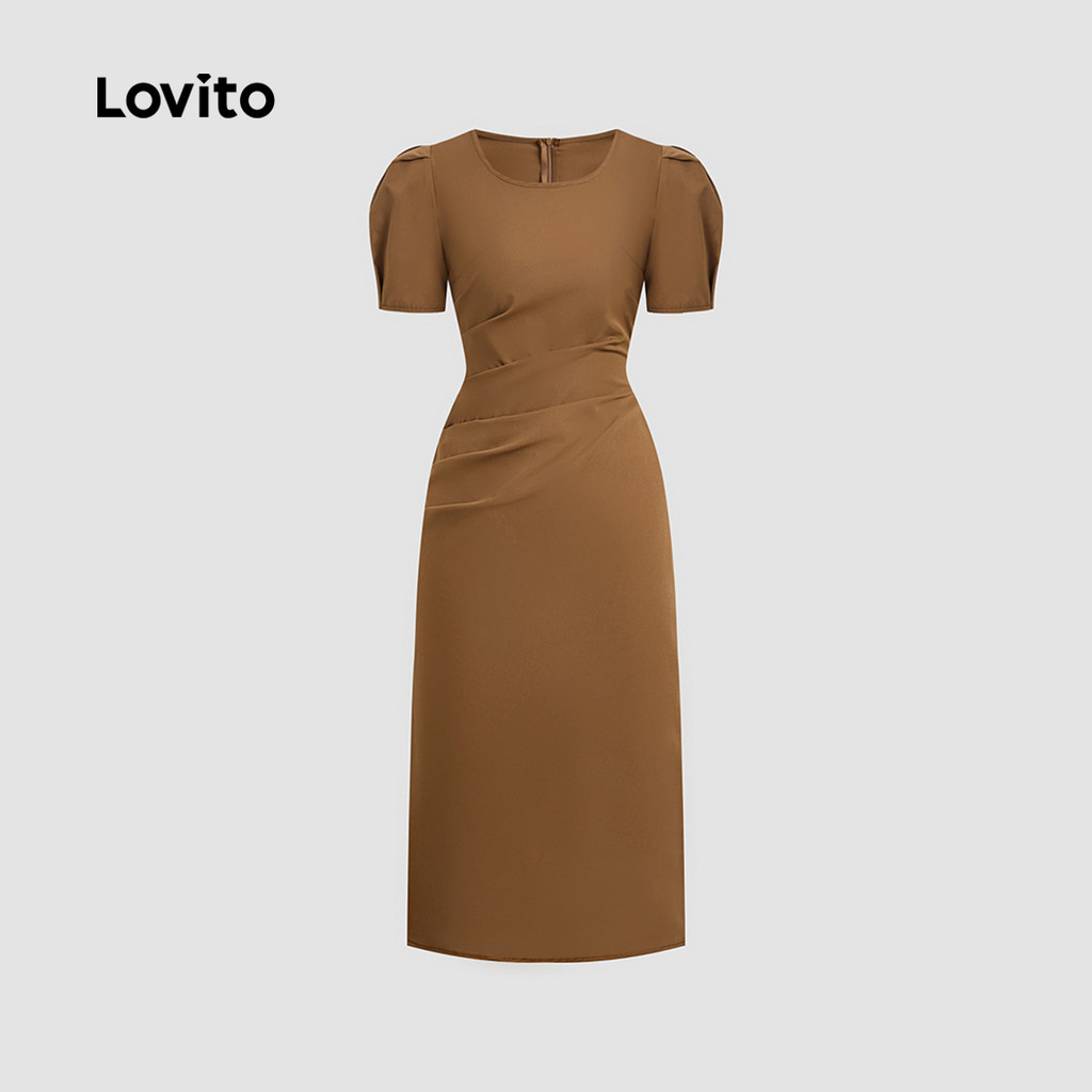 Lovito Elegant Dress Pleated Spring/summer Brown Dress for Women L155ED138 Lovito Gaun Lipit Elegan Musim Bembang Musim Bawar Coklat untuk Wanita L155ED138