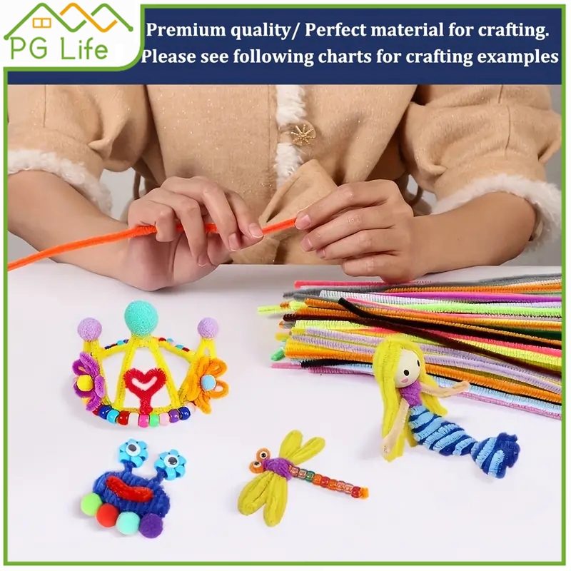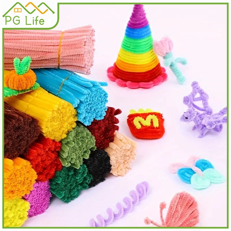 【Lowest price】100Pcs 6mm Colorful Chenille Stems Pipe Dawai bulu Twist Stick Arts DIY Handicraft Kawat Hadiah Raya 扭扭棒