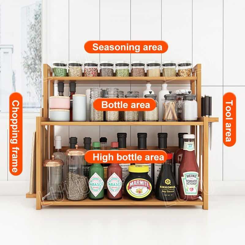 LULU Spice Rack Rak Dapur 4/3/2 Layers Kitchen Organizer Rak Storage Rack Seasoning Storage Rack 调料架