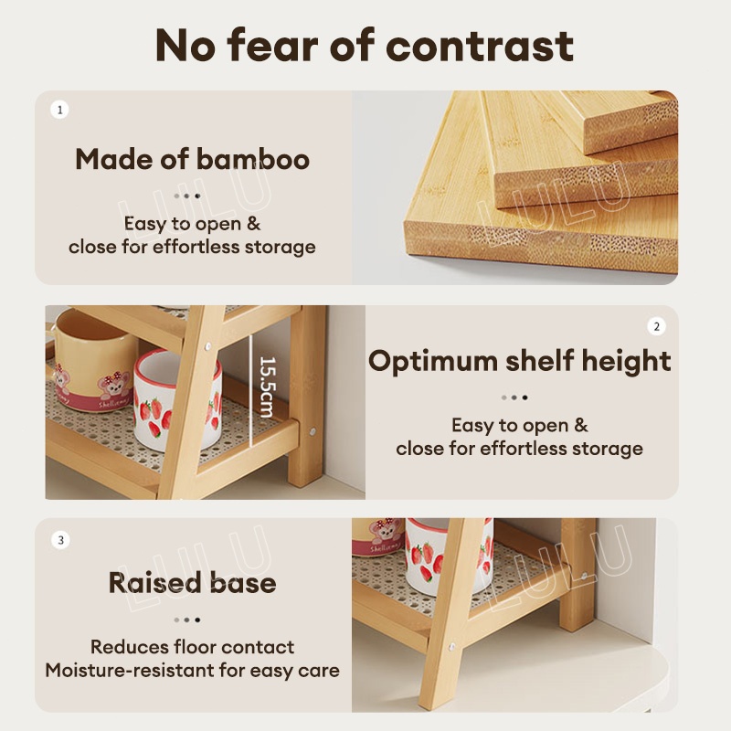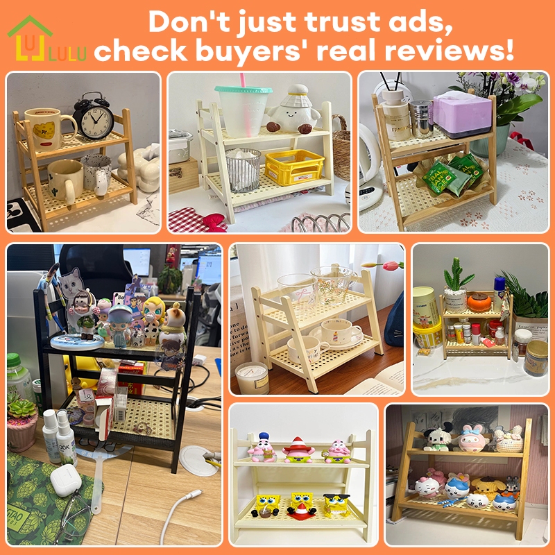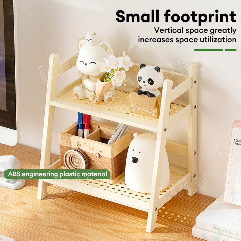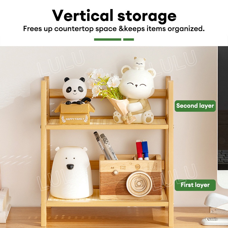 LULU Table Storage Rack Rak Buku Almari 2 Layer Bamboo Wooden Kitchen Storage Rack Display Rack 置物架
