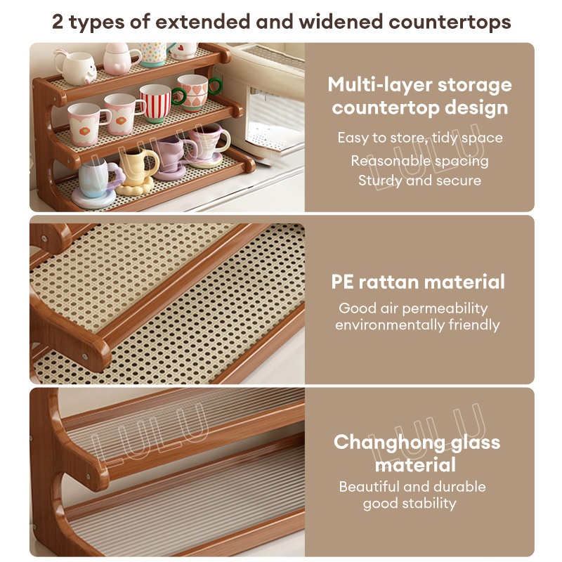 LULU Wooden Kitchen Rack – 2 or 3 Layers Table Storage Rack, Bookshelf, Cabinet