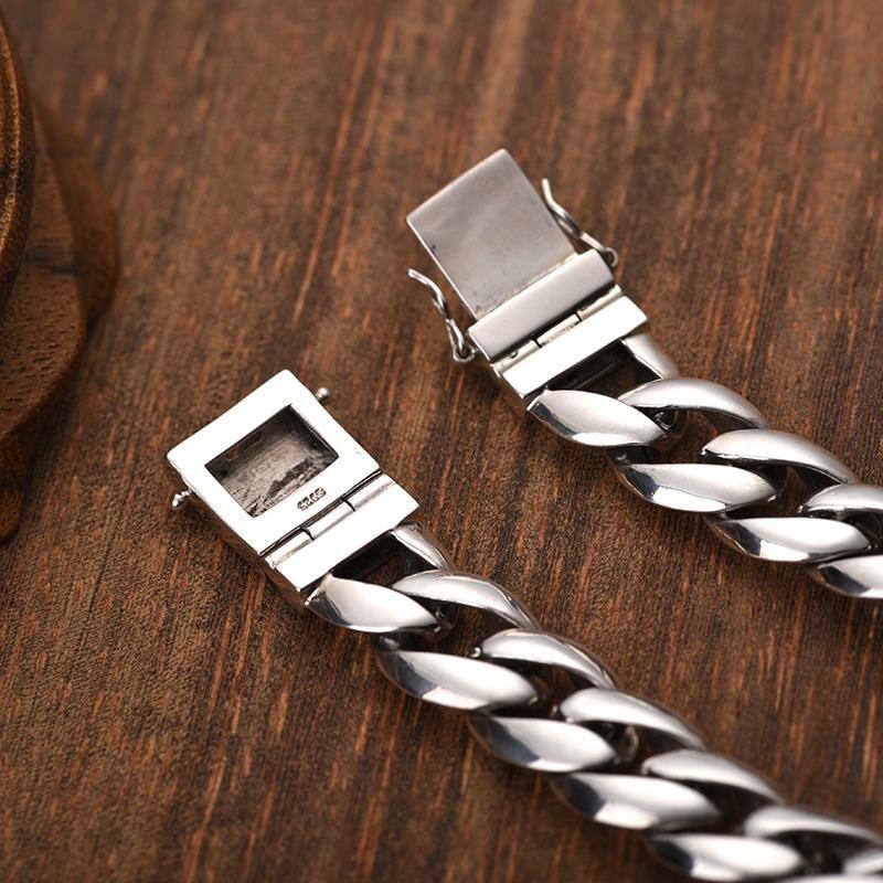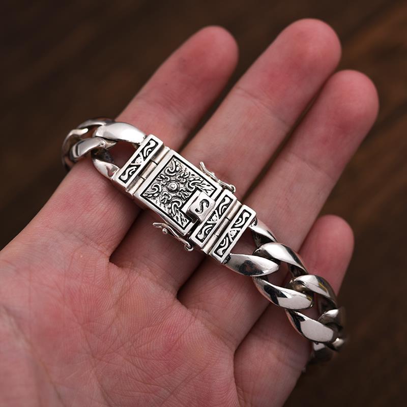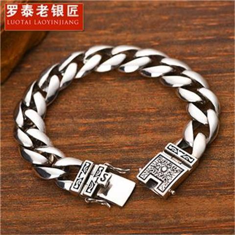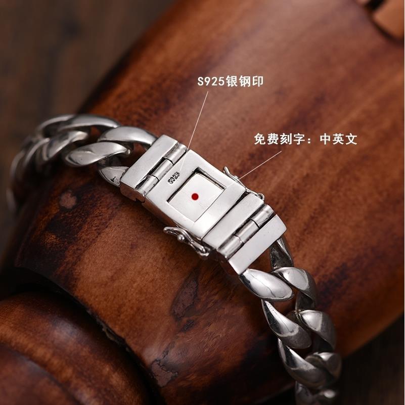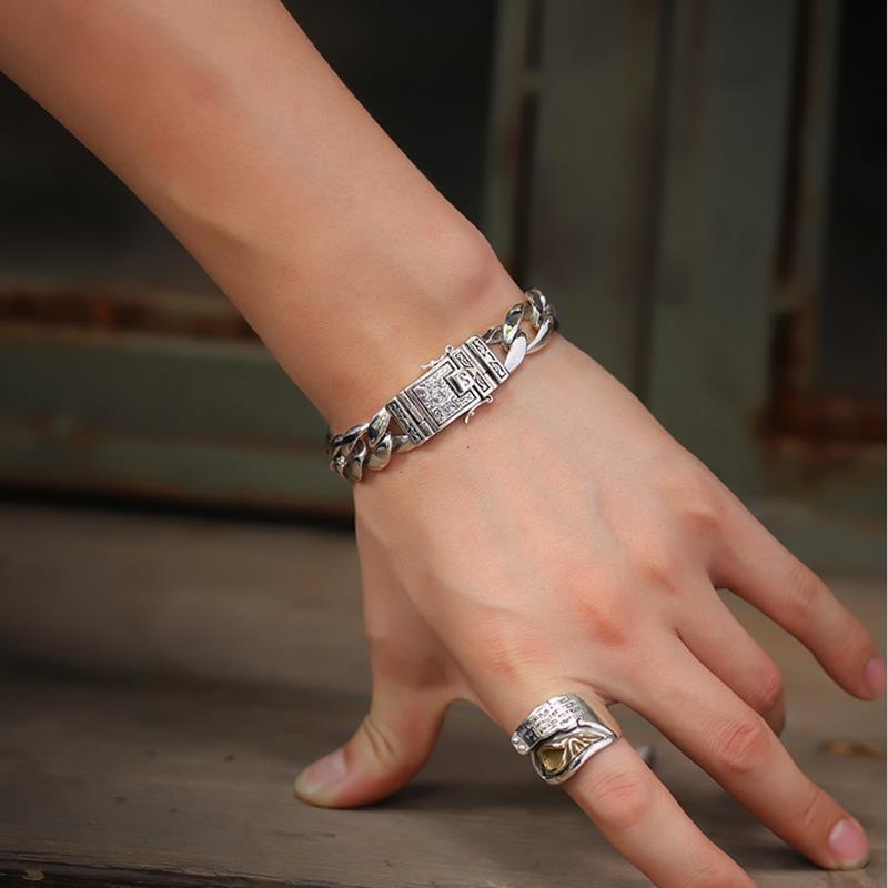 Luotai Old Silversmith Men 925 Silver Lettering Bracelet Men Simple Korean Version Trendy Punk Light Body Silver Chain Trend