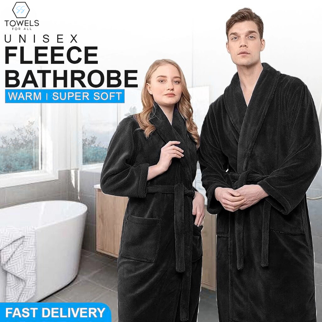 Luxury Fleece Bathrobe | Unisex Long Robe | Plush Shawl Collar | Soft Spa-Style Comfort for Men & Women