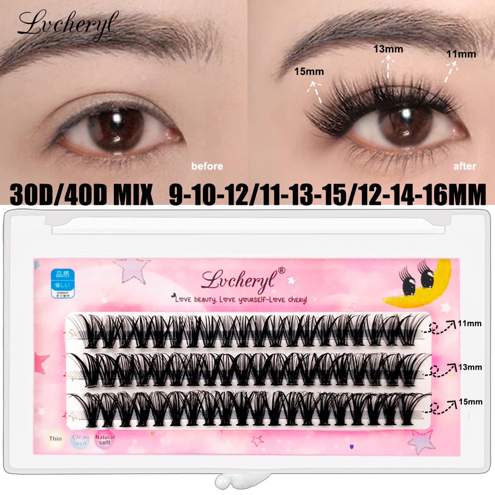 Lvcheryl D Curl 30D/40D Mixed Length Eyelash Extension With Glue Tweezer Thick Fluffy Lash Extensions 60 Clusters DIY At Home For Beginners