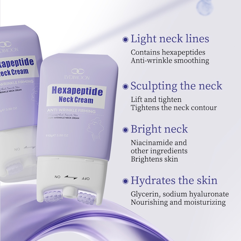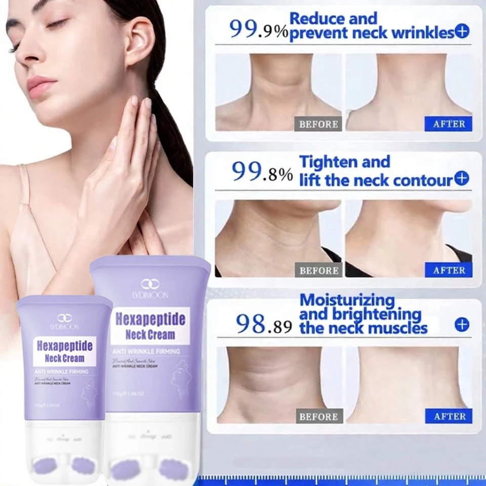 LYDIMOON Hexapeptide Neck Cream 110g - Anti Wrinkle, Firming & Lifting with V-Roller, Deep Moisturizing Neck Care