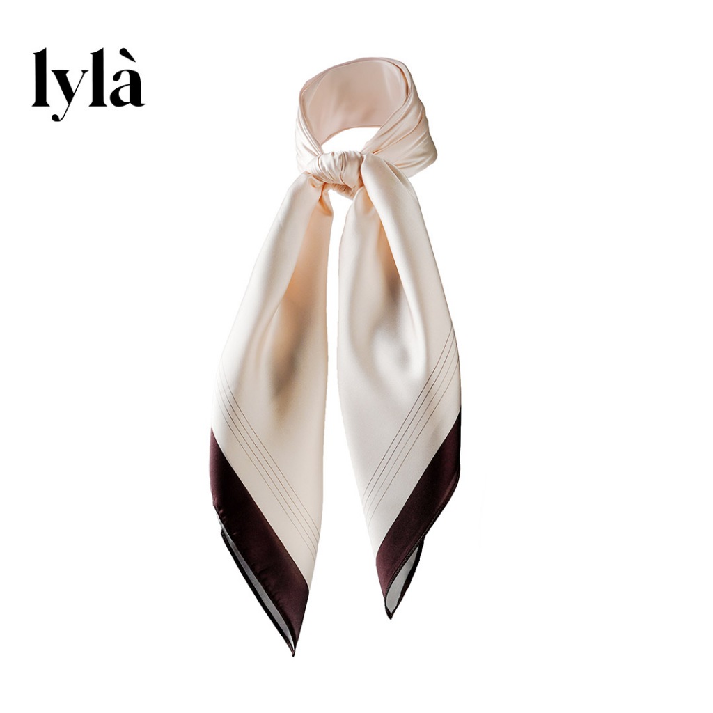 Lyla - Ayana Silk Scarf In (Crema And Coffee) Women's Square Scarf 90x90 cm Cream And Dark Brown