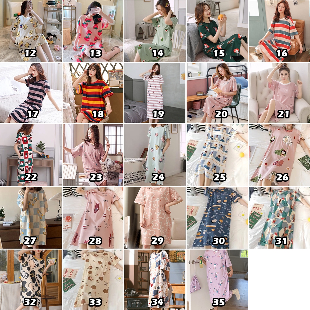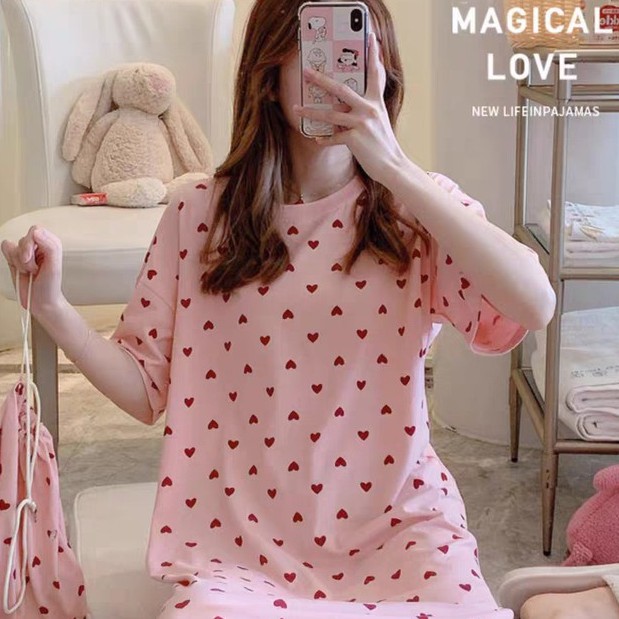 [M-2XL][Lamoda]YURI Womens pyjamas Plus Size Dress Pyjamas Sleepwear Pajamas Nightwear Baju Tidur Perempuan
