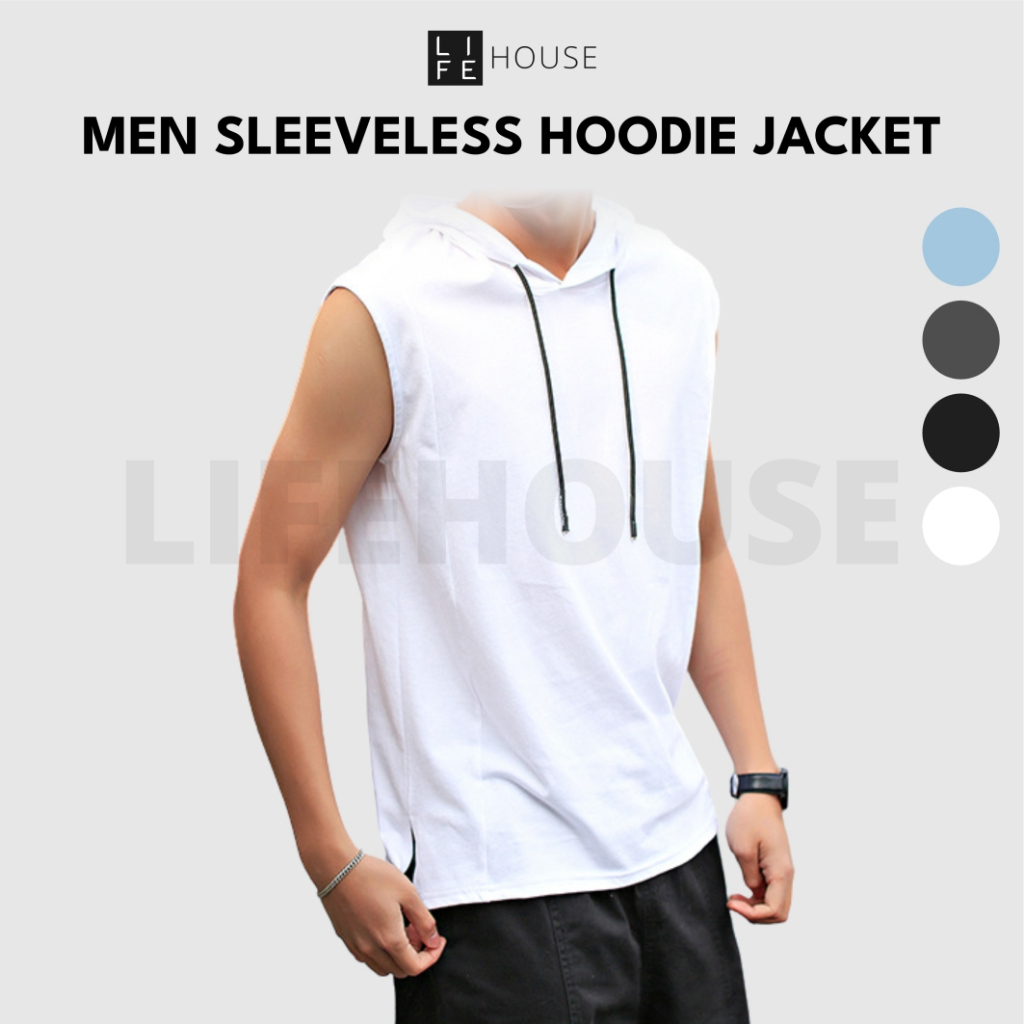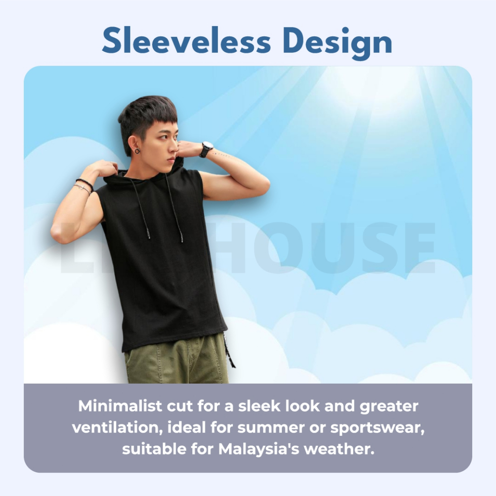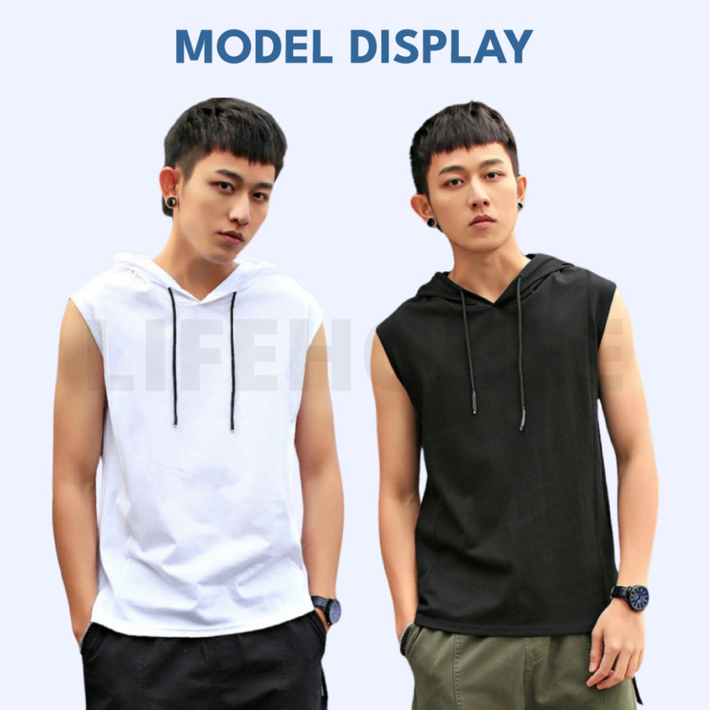 [M-3XL] Gym Singlet with Hoodie Sleeveless Singlet Baju Sukan Tanpa Lengan Singlet Lelaki Topi Belakang Baju Sukan Korea