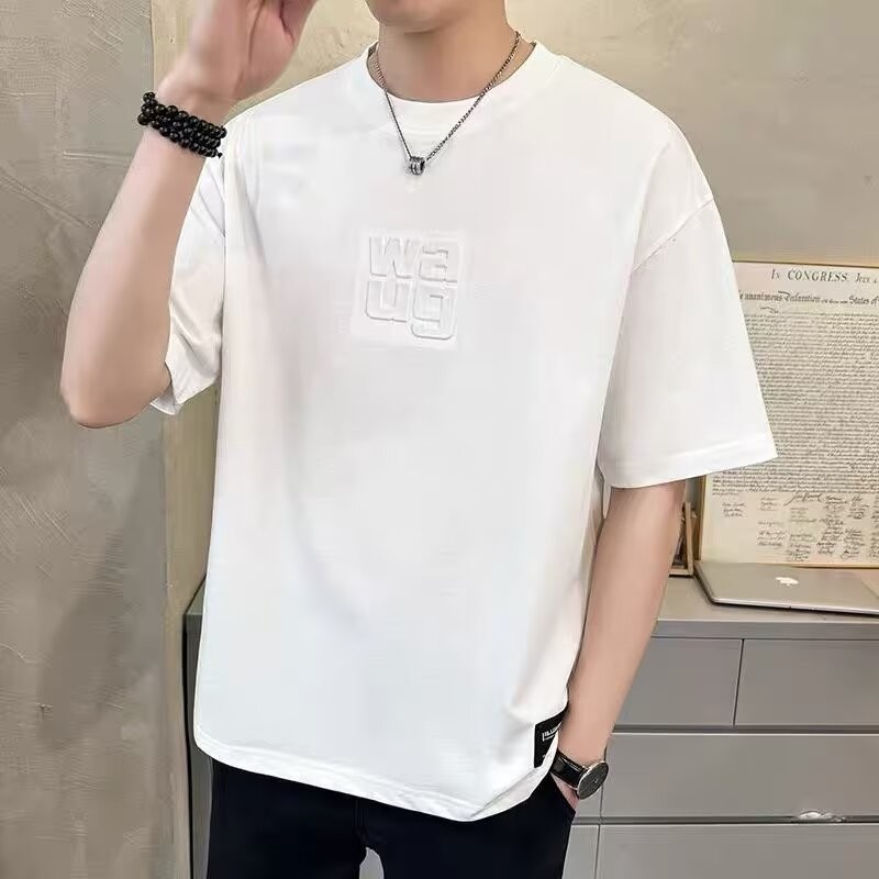M-3xl Suede Short-Sleeved T-Shirt Boys Summer Round Neck Top Large Size