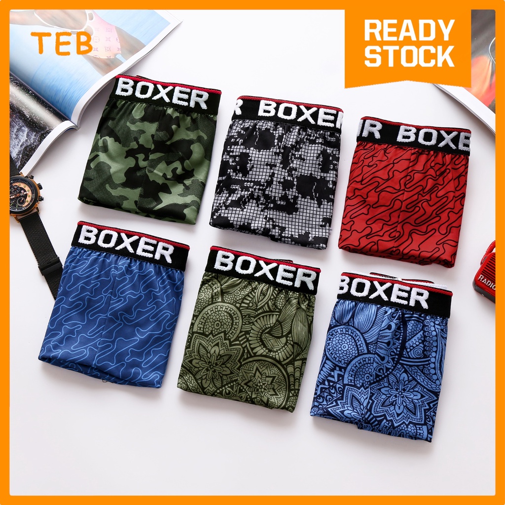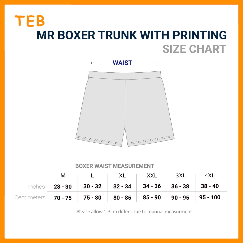 (M–4XL) MR Boxer Classic Printed Trunk Soft Stretch with Logo Waistband | Seluar Dalam Lelaki Corak Klasik
