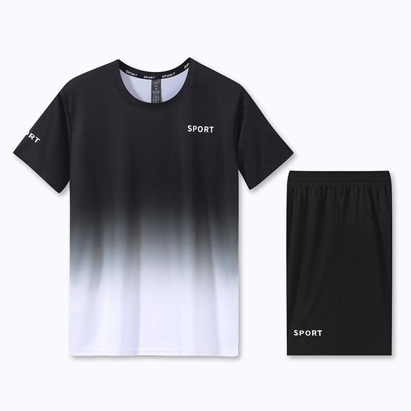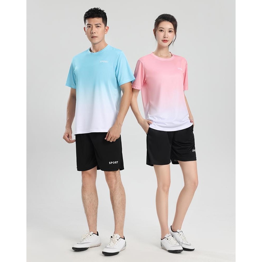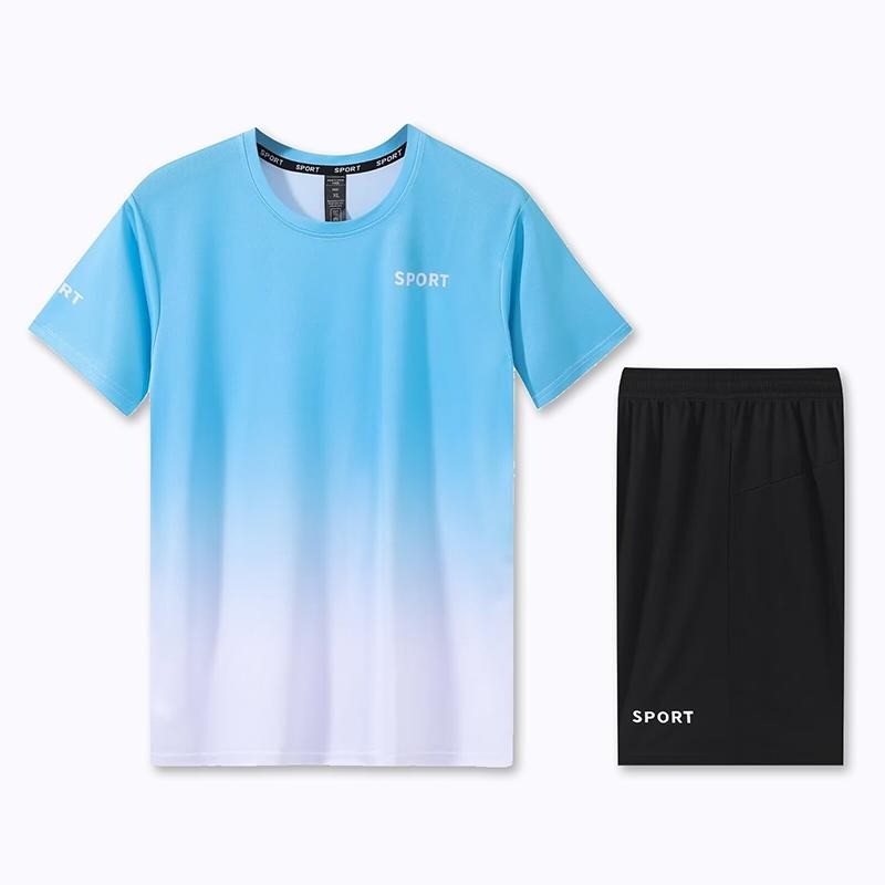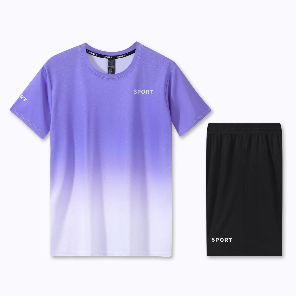 [M-5XL] 2025 Unisex Quick Dry Sports Set Ice Silk Dri-Fit Gradient Printed T-Shirt & Shorts Running/Badminton/Gym All-Match Outfit Plus Size