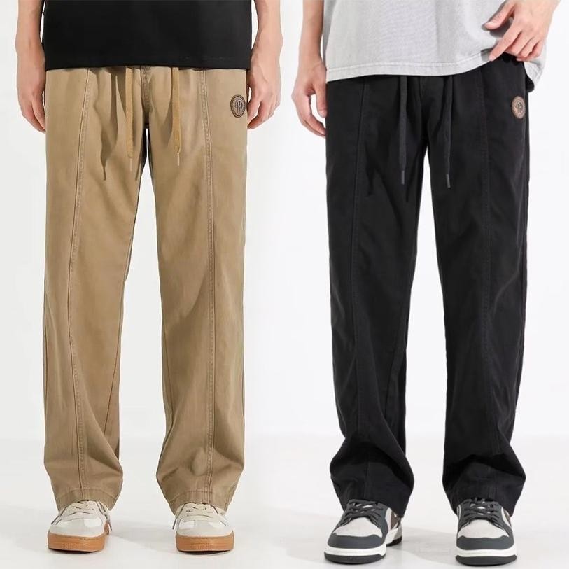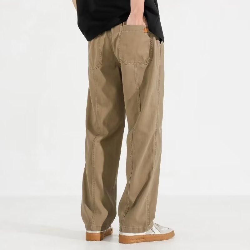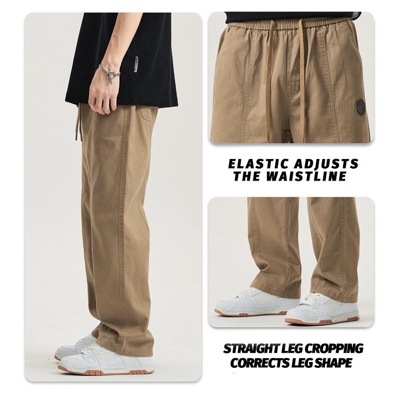 M-5XL American Plus Size Cotton Loose Straight Cut Khaki Kargo Cargo Work Casual Slack Pants Men Trousers Selalu Panjang Lelaki