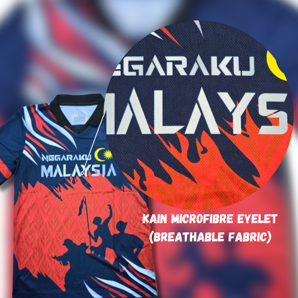 【M-5XL】Jersey Malaysia Microfibre Eyelet Short Sleeve ST8 Baju Jersi Merdeka Lengan Pendek