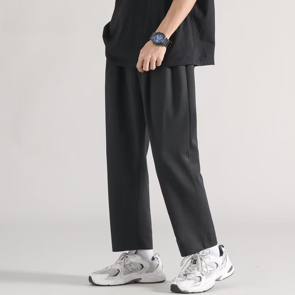 M-5XL Men's Summer cargo Loose Casual Pants For Men Wide Leg Sweatpants Thin Solid Color Sports Celana Baggy Pants Lelak Plus Size Black\Grey