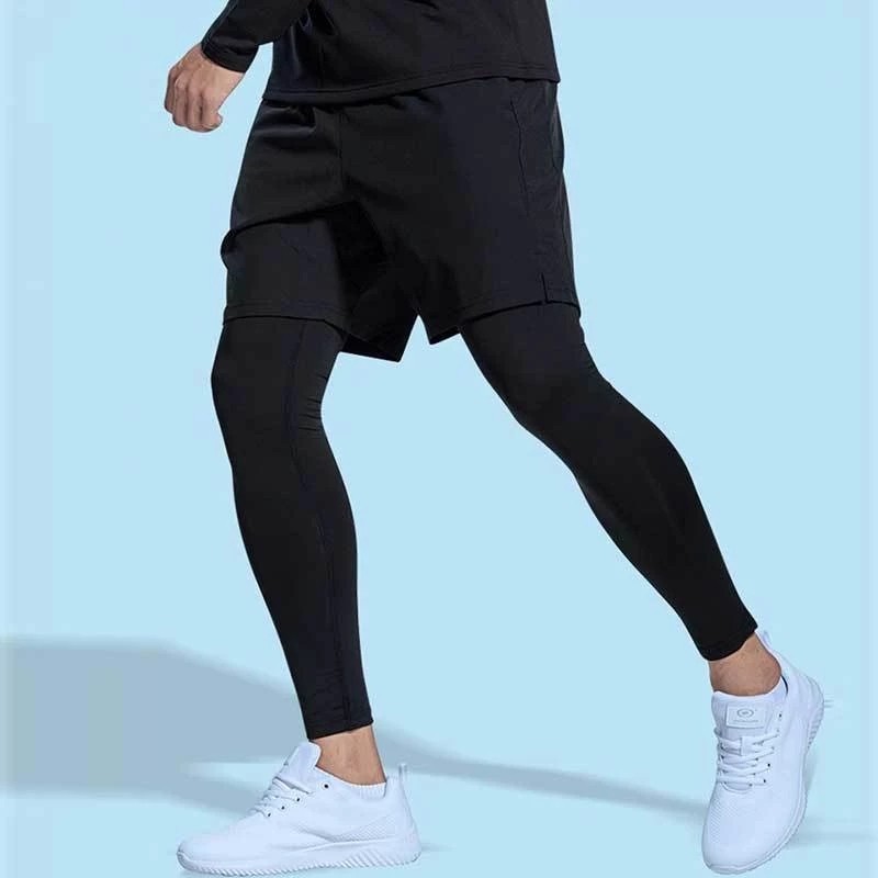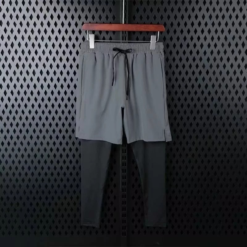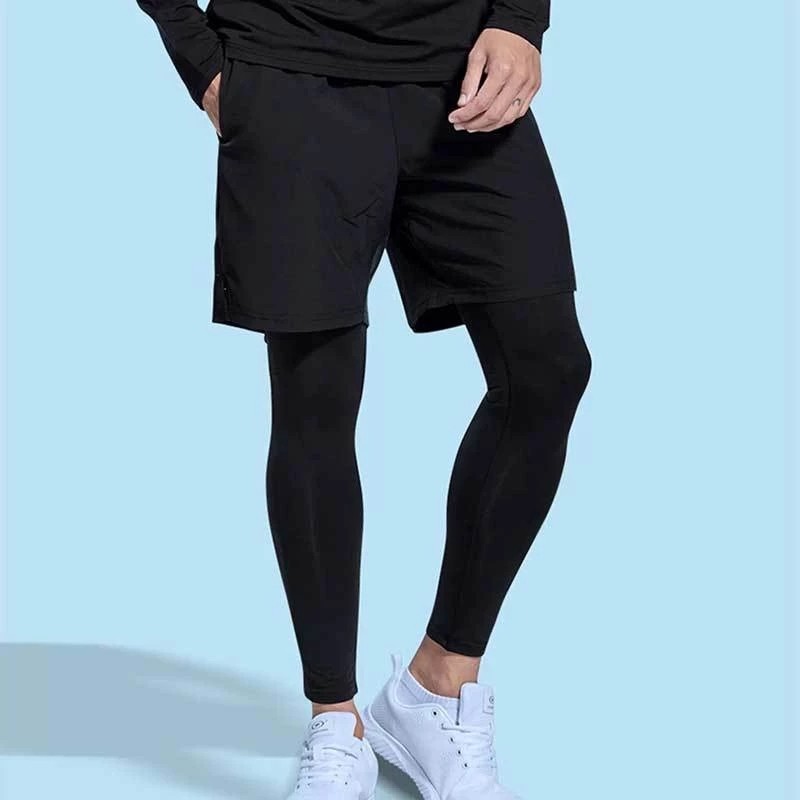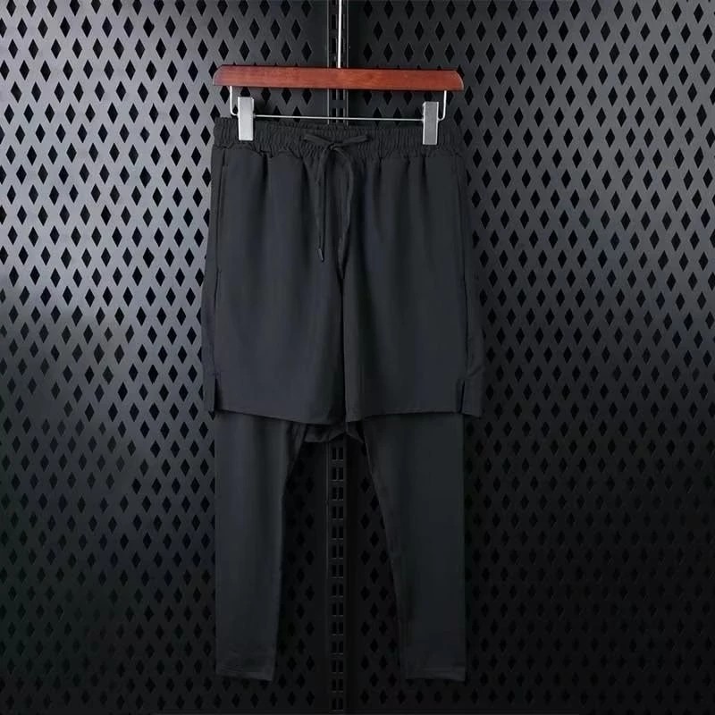 M-5XL Unisex Fitness Training Gym Running Pants with Cycling Seluar Tight Lelaki 2-in-1 All-match Sport Pants Women Summer Quick-dry