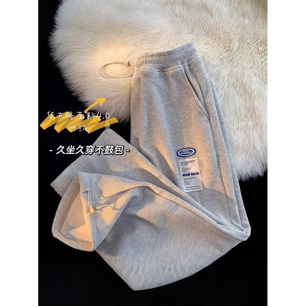 [M-5XL]Waffle Sweatpants Men's Loose Wide Leg Straight Leg Casual Pants Versatile Retro Drawstring Pants
