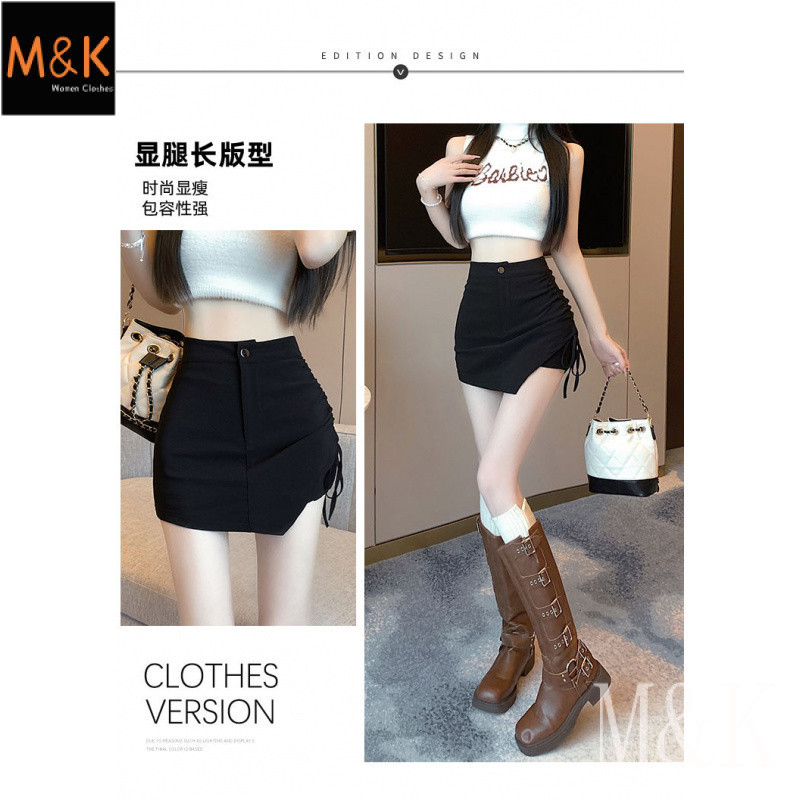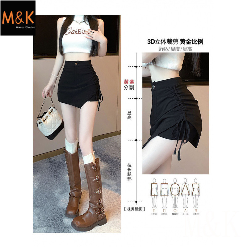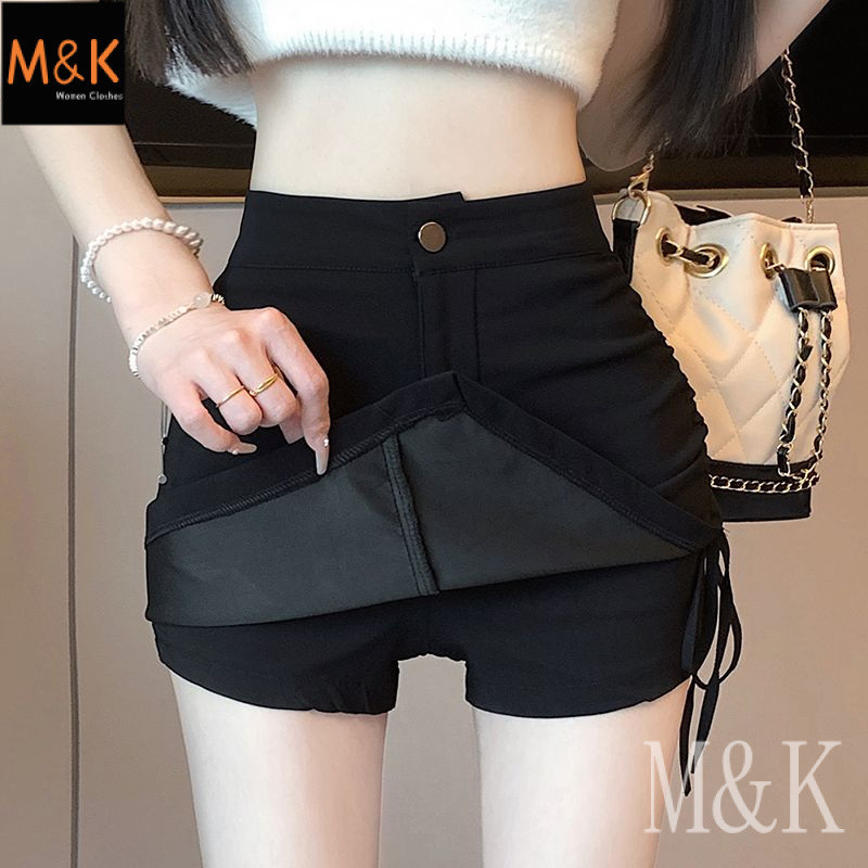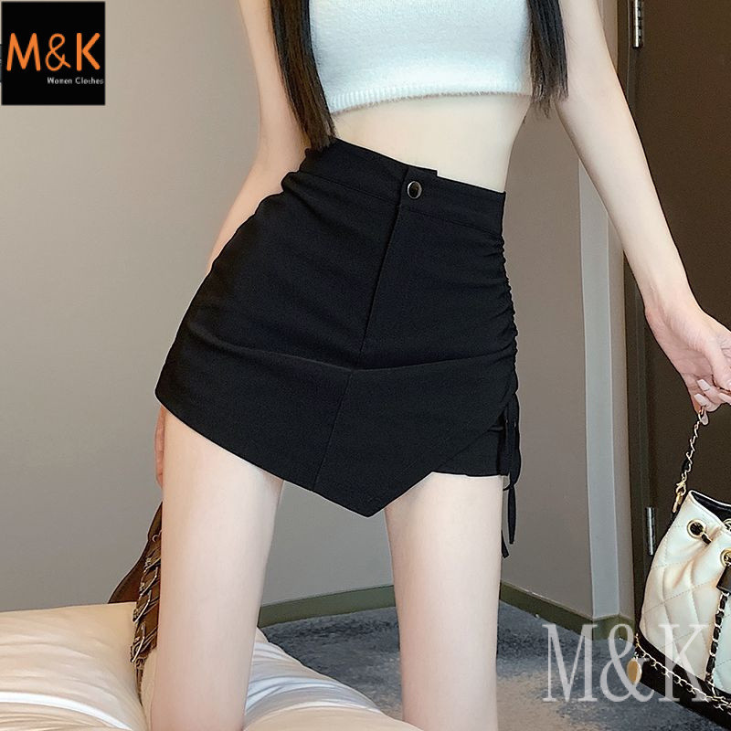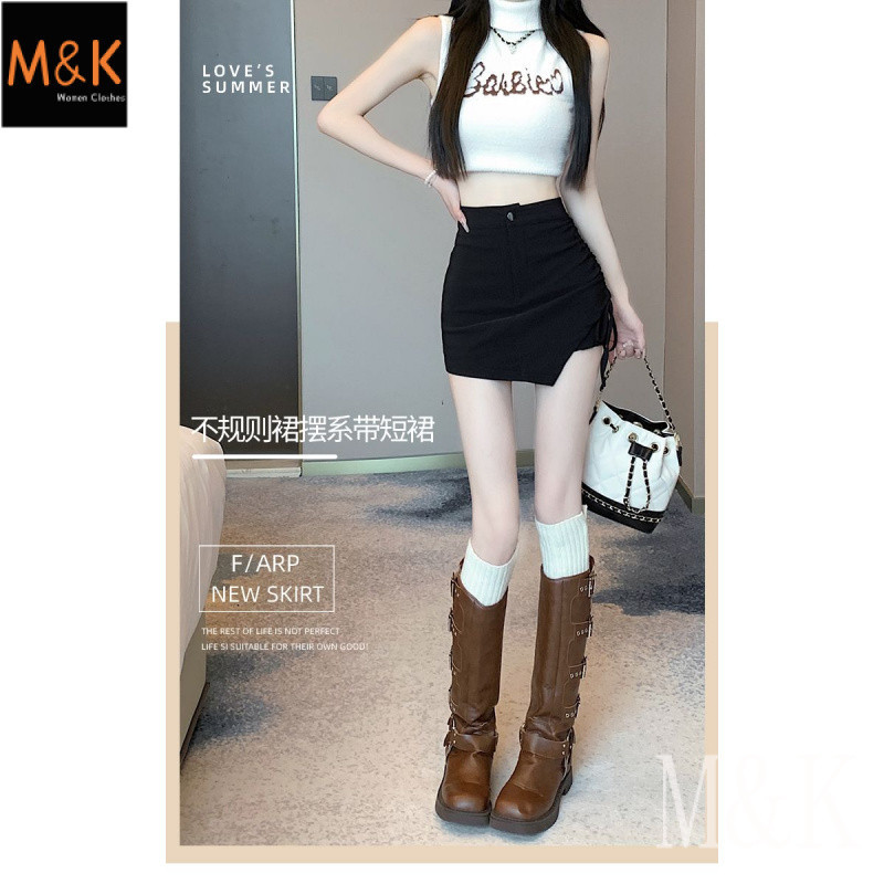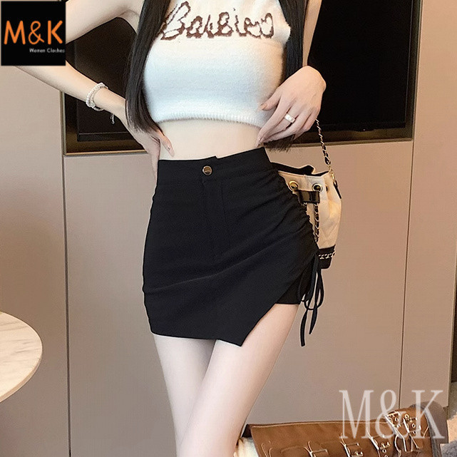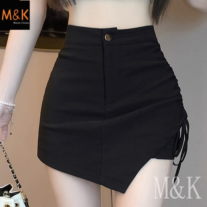 M&K Summer Plus Size XS-4XL Irregular Skirt Women High Waist Black Short Skirt A Line Hip Skorts半身裙