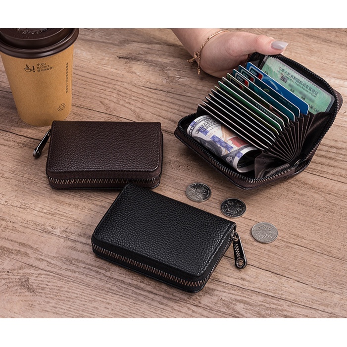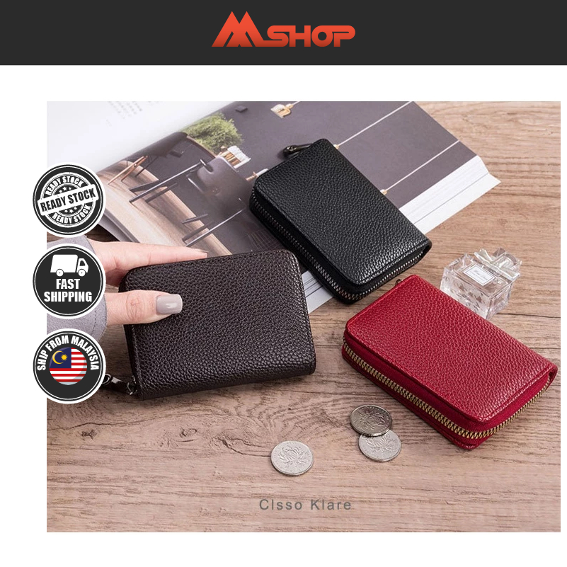 M^Shop #W1 Leather Credit Card Wallet Card Holder Wallet Women Men ATM ID Card Case Coin Purse Leather Zip Wallets 小钱包