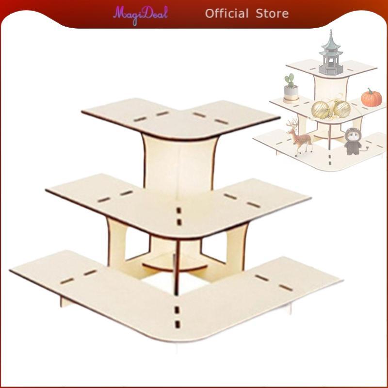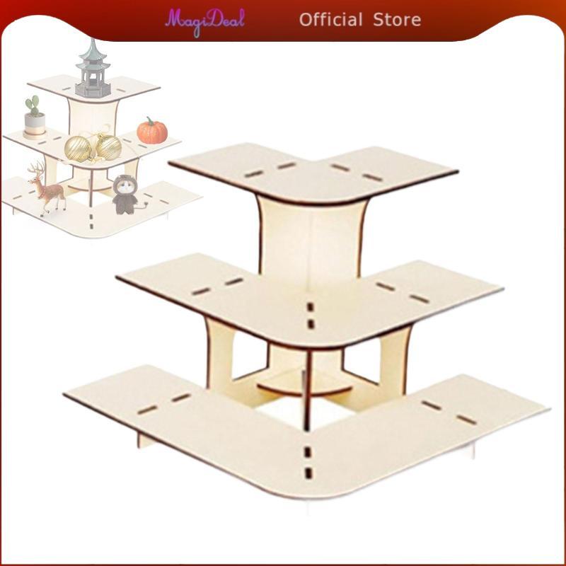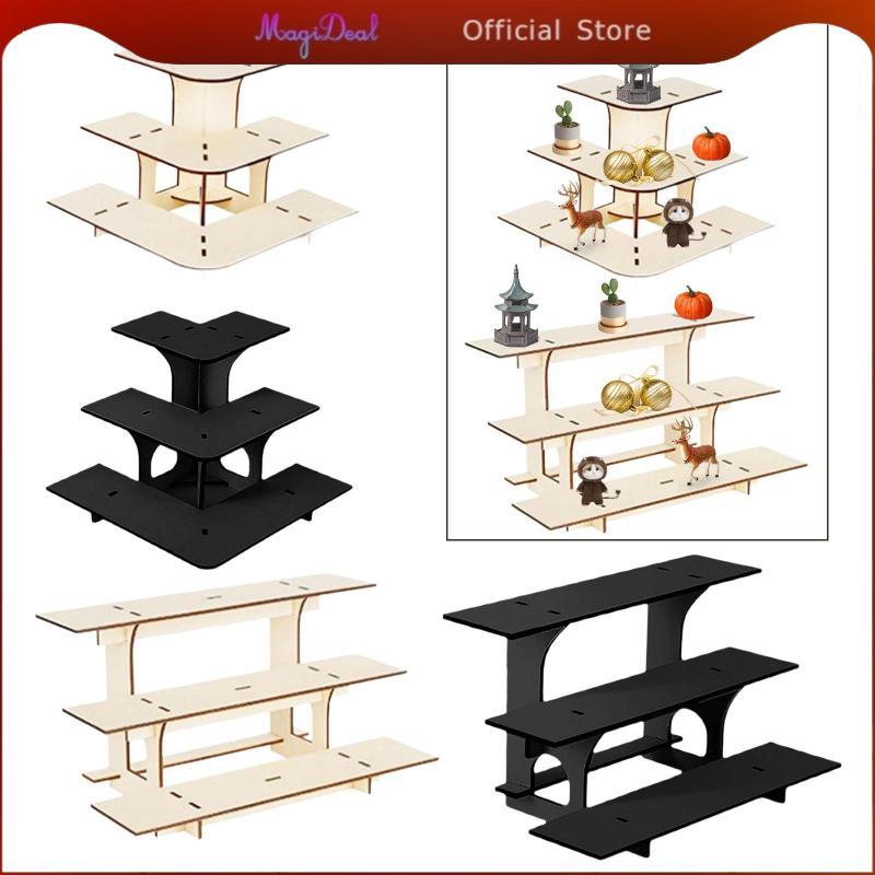 MagiDeal 3 Tier Corner Tiered Display Stand for Products Wooden Display Shelf Portable
