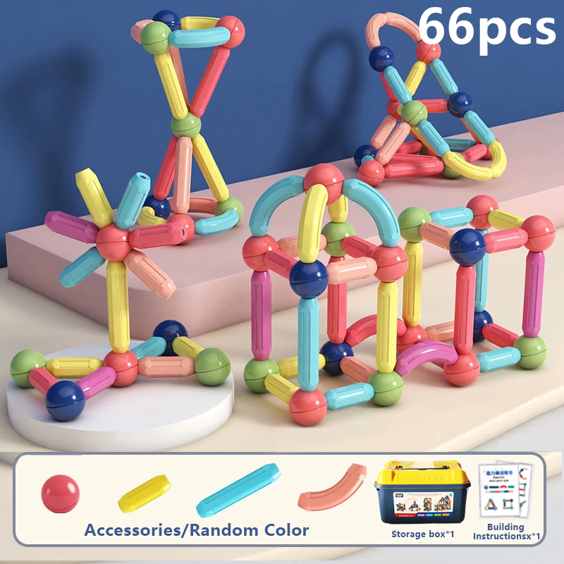 Magnetic Toys 108PCS Kids Magnetic Stick Balls Building Blocks toy With Storage Box 3D Geometry Learning Sensory Construction Blok Panjang