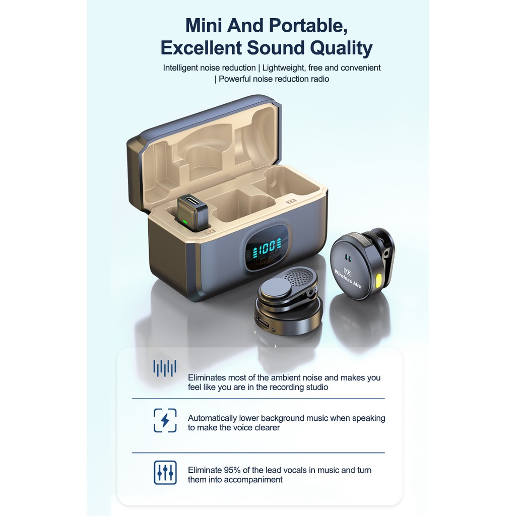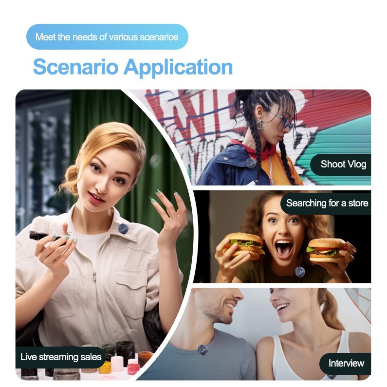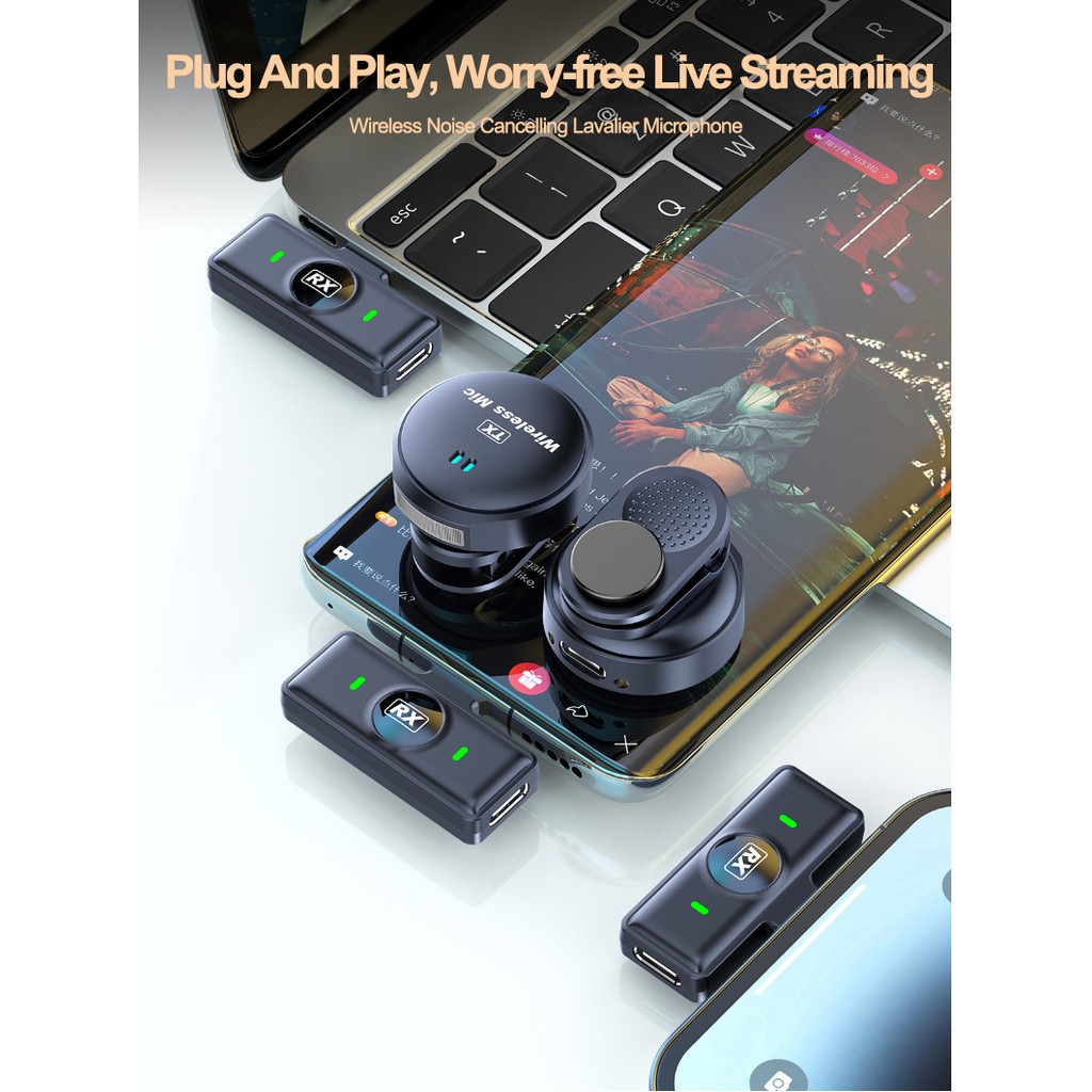 Magnetic Wireless Lavalier Microphone Audio Video Recording Microphone Noise Cancel Lapel Microphone for Smart