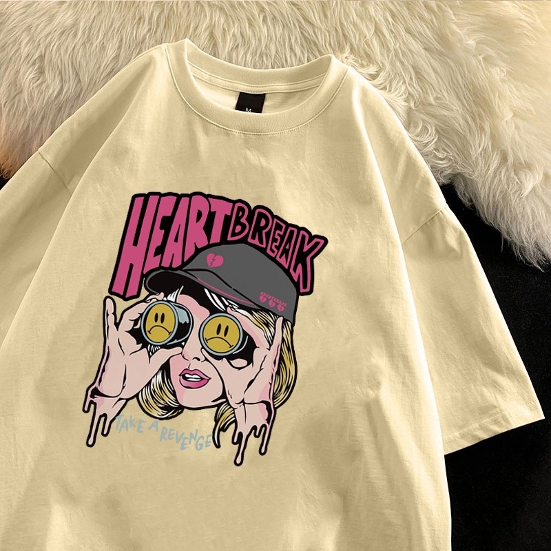 Maise Korea style Baju wanita | Oversize T-shirt 100% kapas | Reka bentuk retro kartun Amerika top kasual yang bergaya
