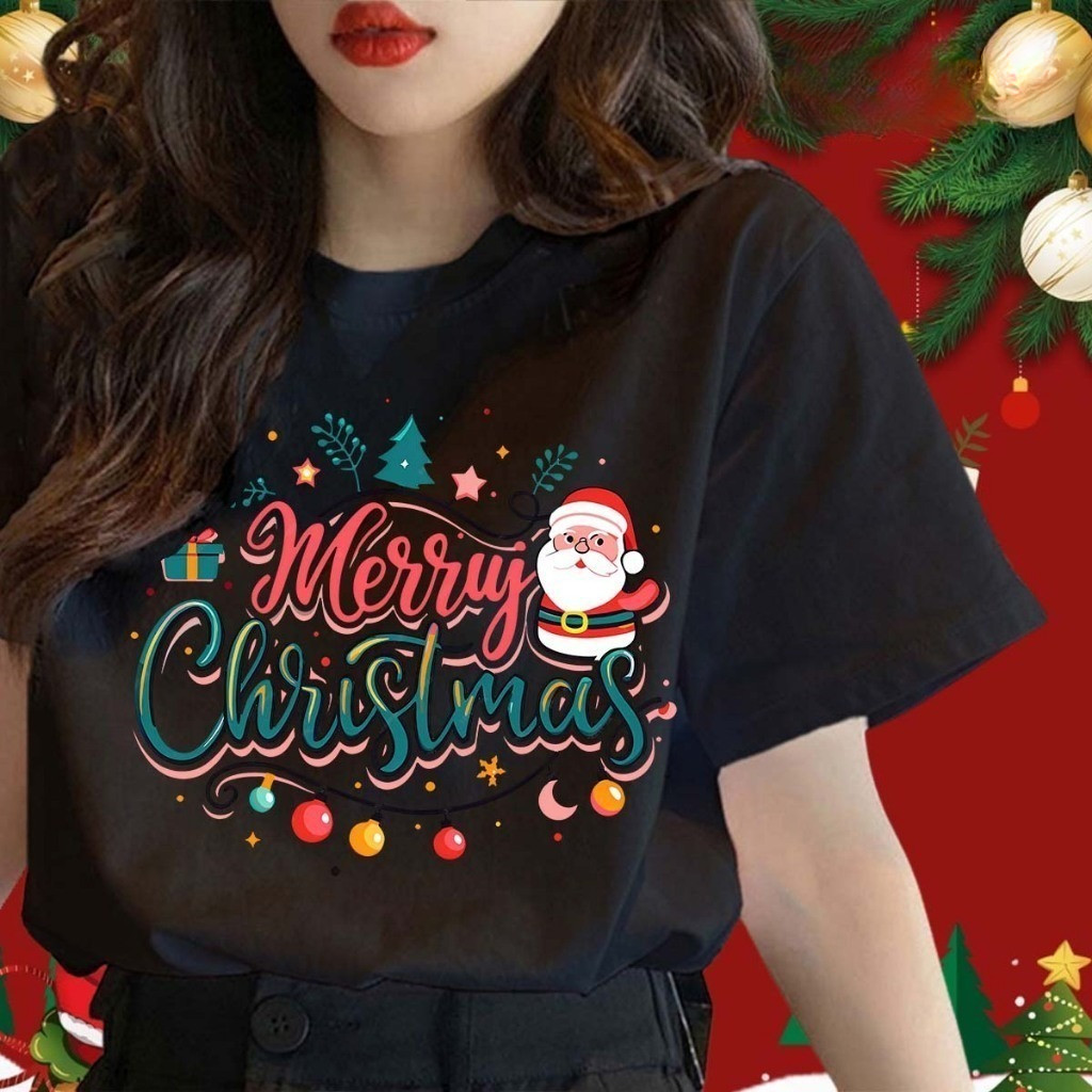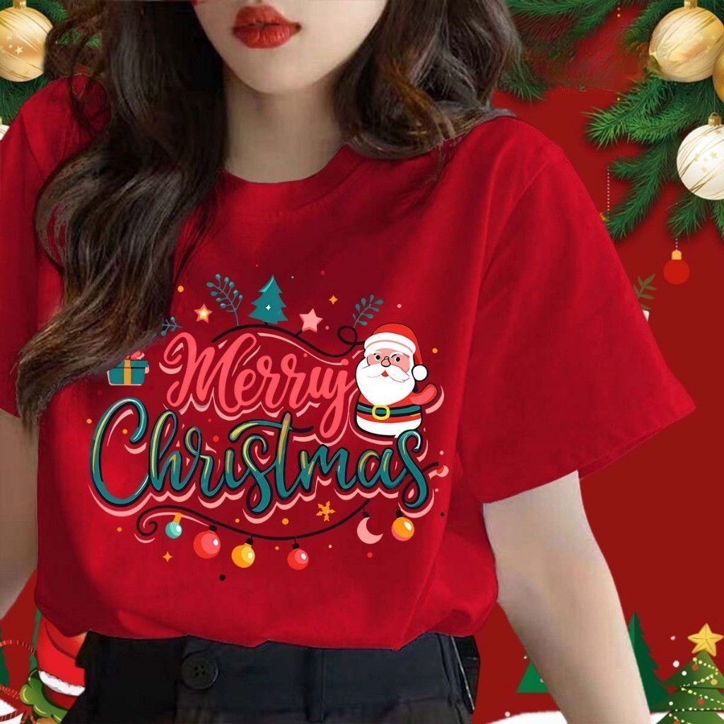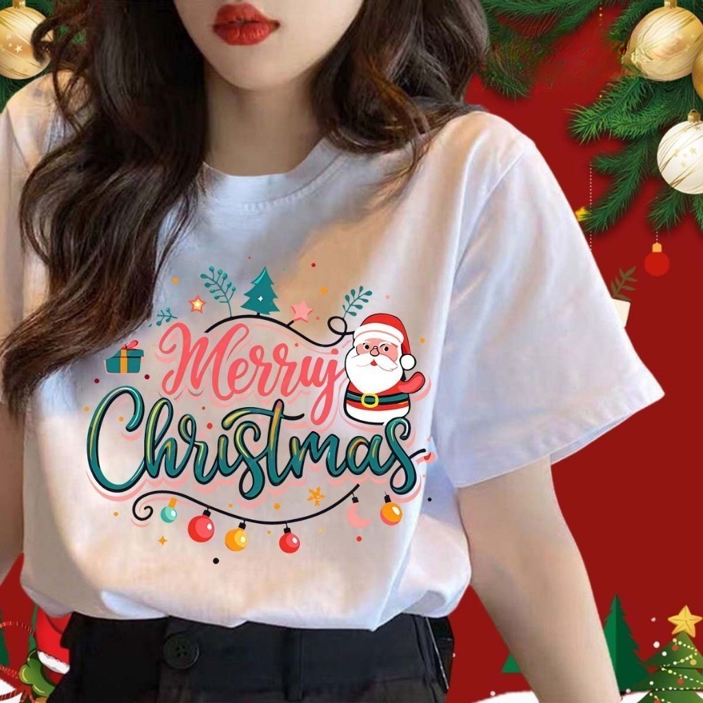 Maise Parent-child Baju Merry Christmas T-shirt Kids Adults Christmas T-shirt Cotton Christmas Family Short Sleeve