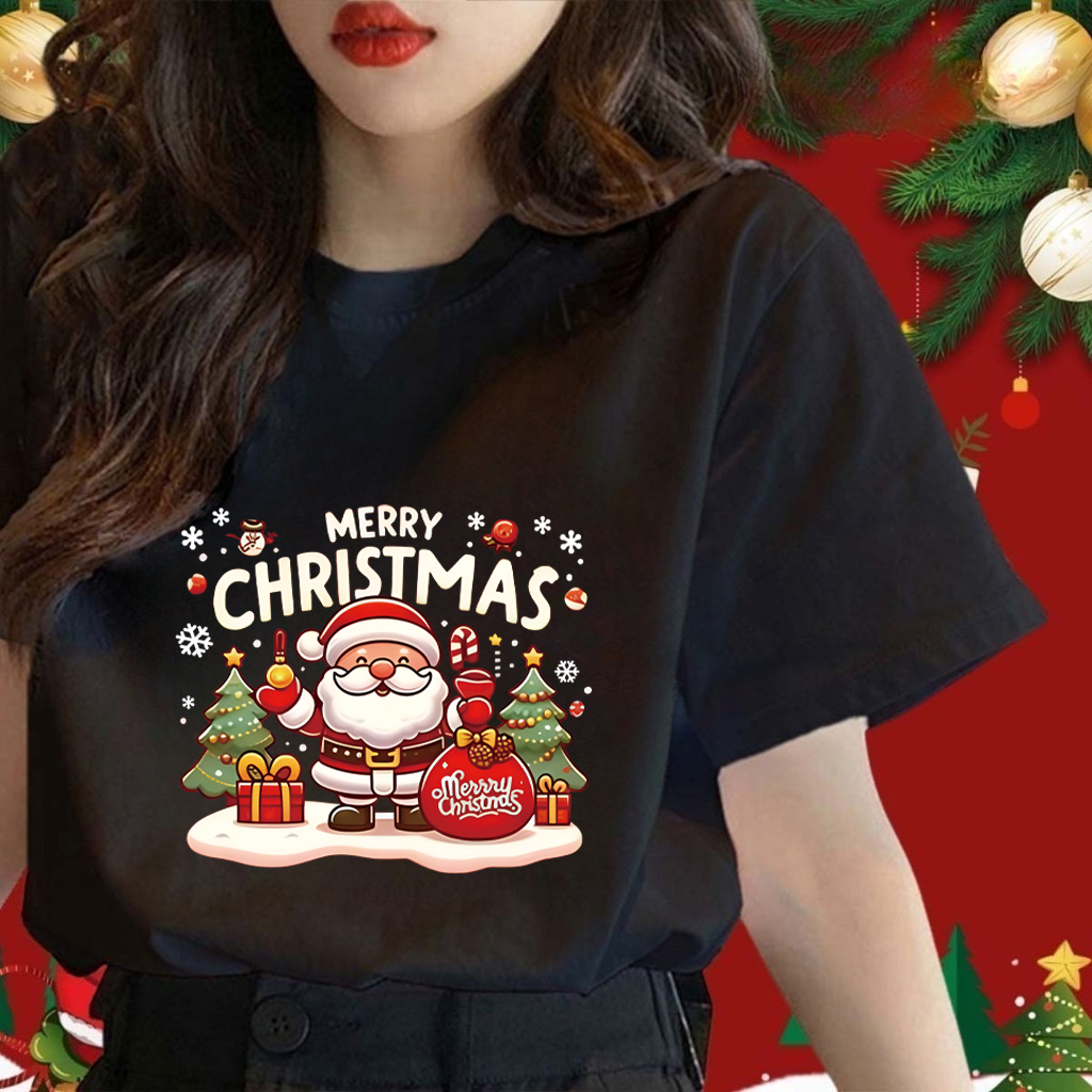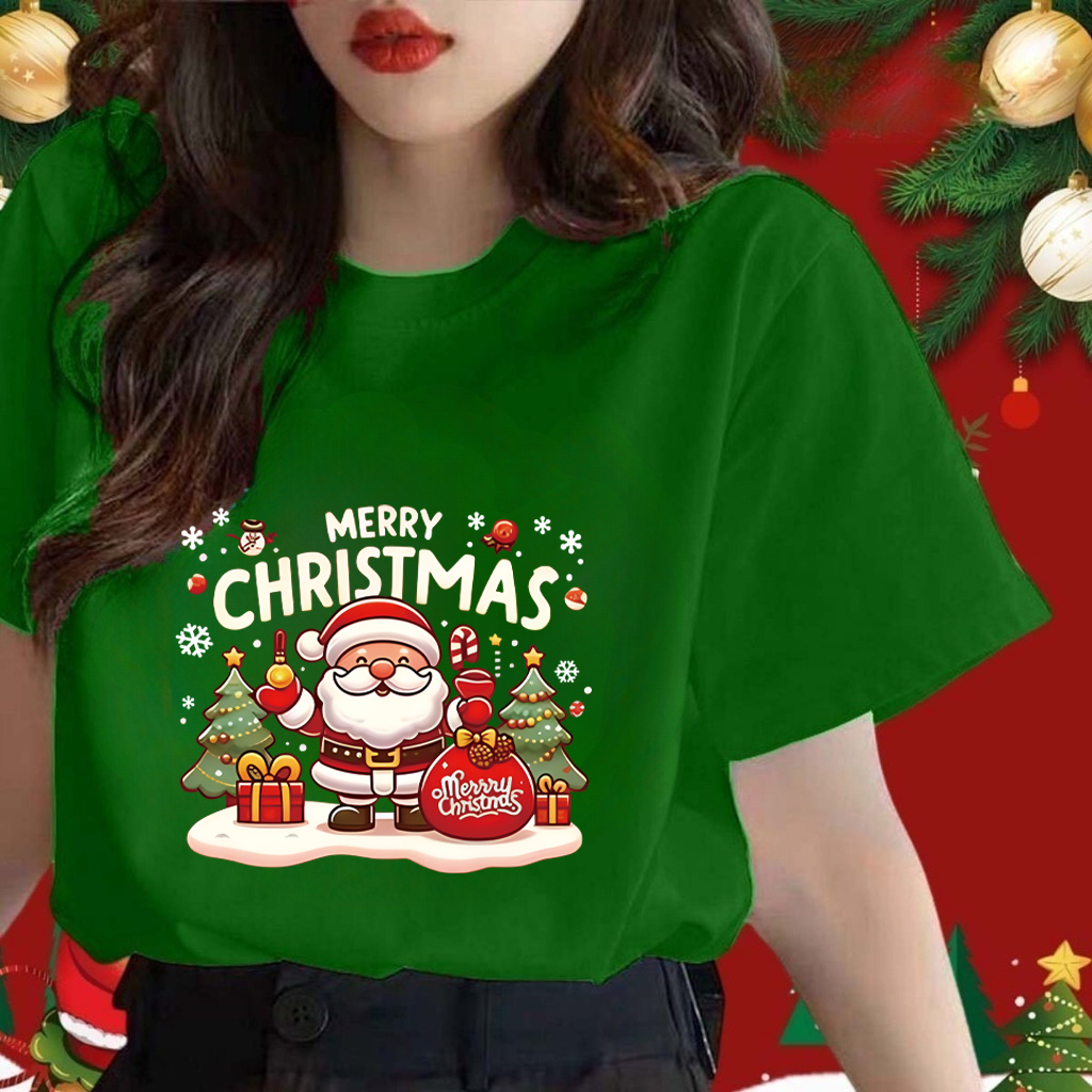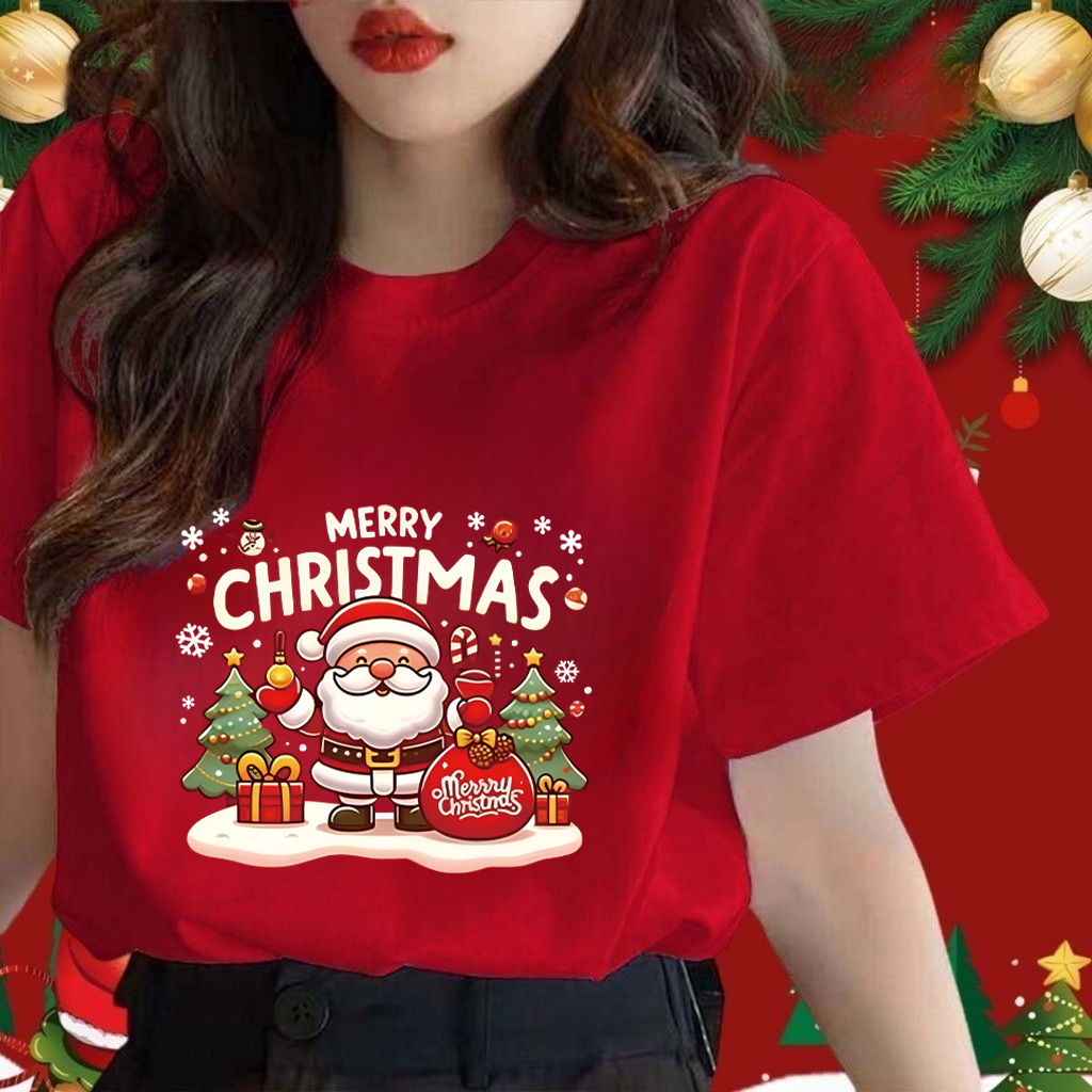 Maise Parent-child Baju Merry Christmas T-shirt Kids Adults Christmas T-shirt Cotton Christmas Family Short Sleeve