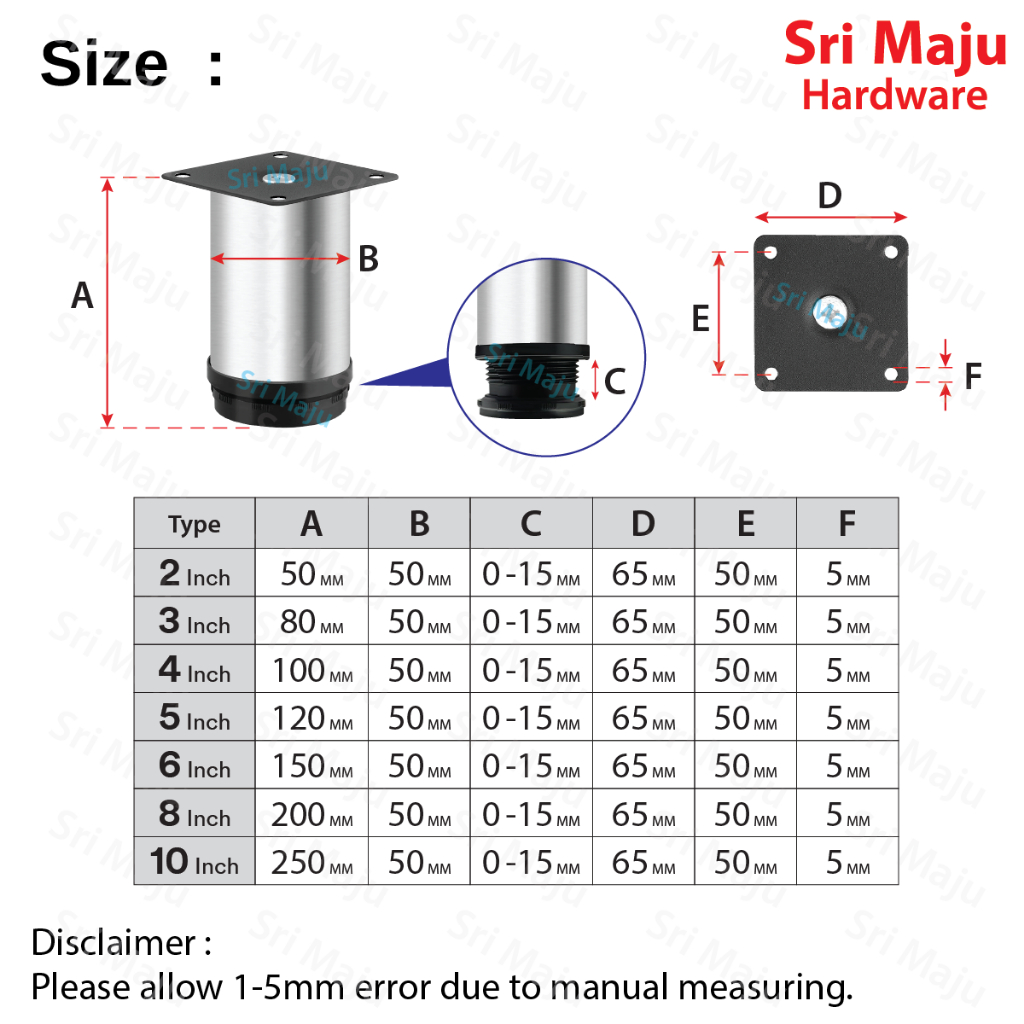 MAJU FLG-SS Heavy Duty Stainless Steel Cabinet Leg Closet Sofa Bed Feet Support Stand Leg Kaki Perabot Sofa Almari Katil