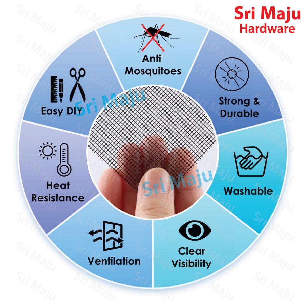 MAJU MNA-FBN Quality Fiberglass Mesh Net Grey Netting for DIY Mosquito Window Screen Mesh Insect Jaring Nyamuk Tingkap