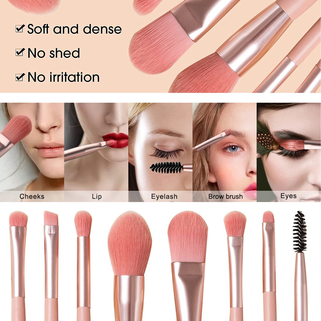 Makeup Brush 8 Mini Makeup Brush Set Brush Plastic Handle Portable Makeup Brush Soft Hair Makeup Tool Foundation Brush Eyeshadow Brush