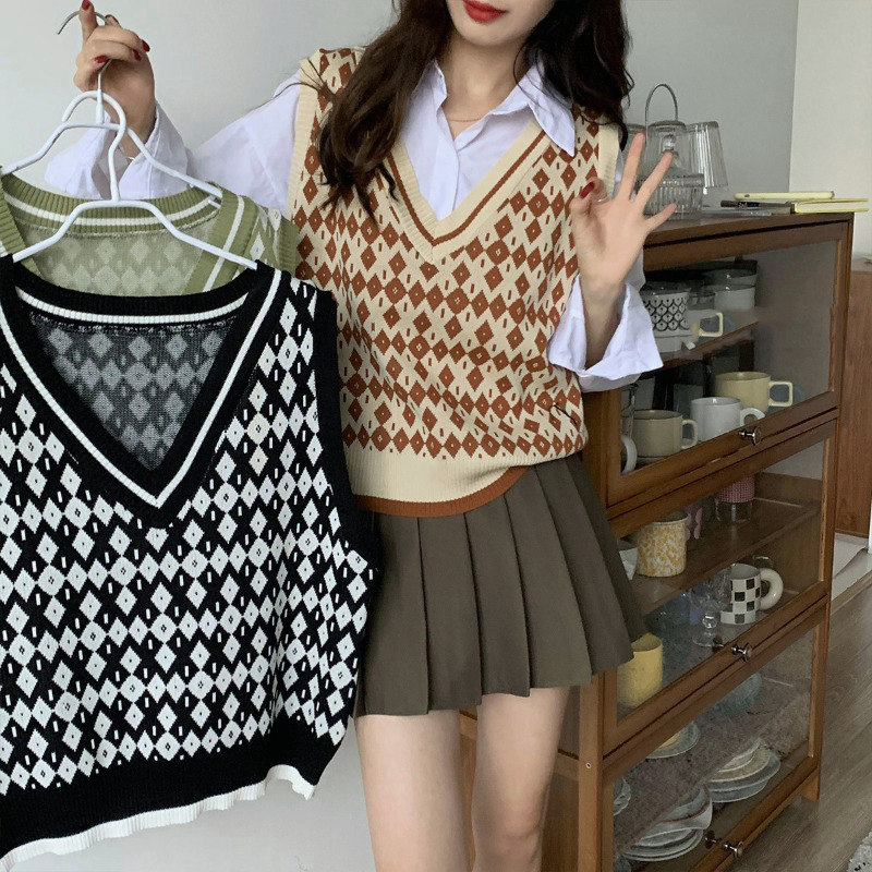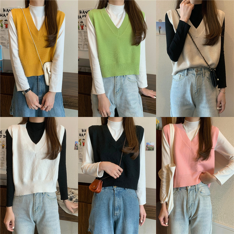 【Malaysia Ready Stock】Women Knit Vest Knitted Vest Sleeveless Knitwear Soft Comfy Vest Sweater High Quality Amika1