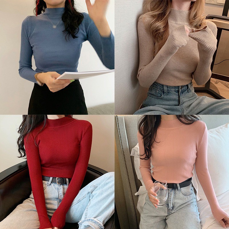 【Malaysia ready stock】Women Winter Sweater Long Sleeve Knitted Shirt High Quality amika1