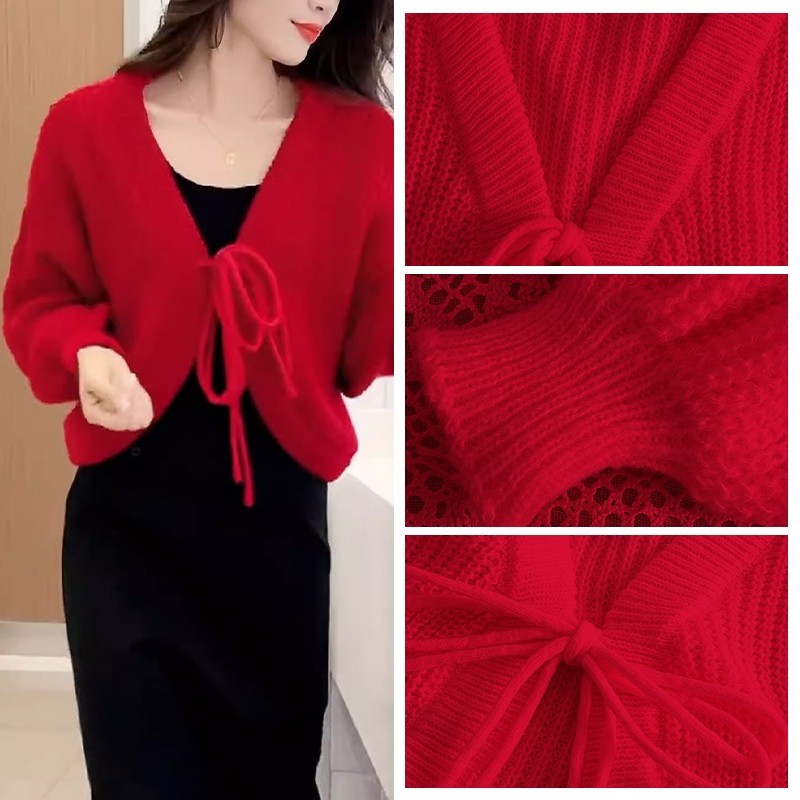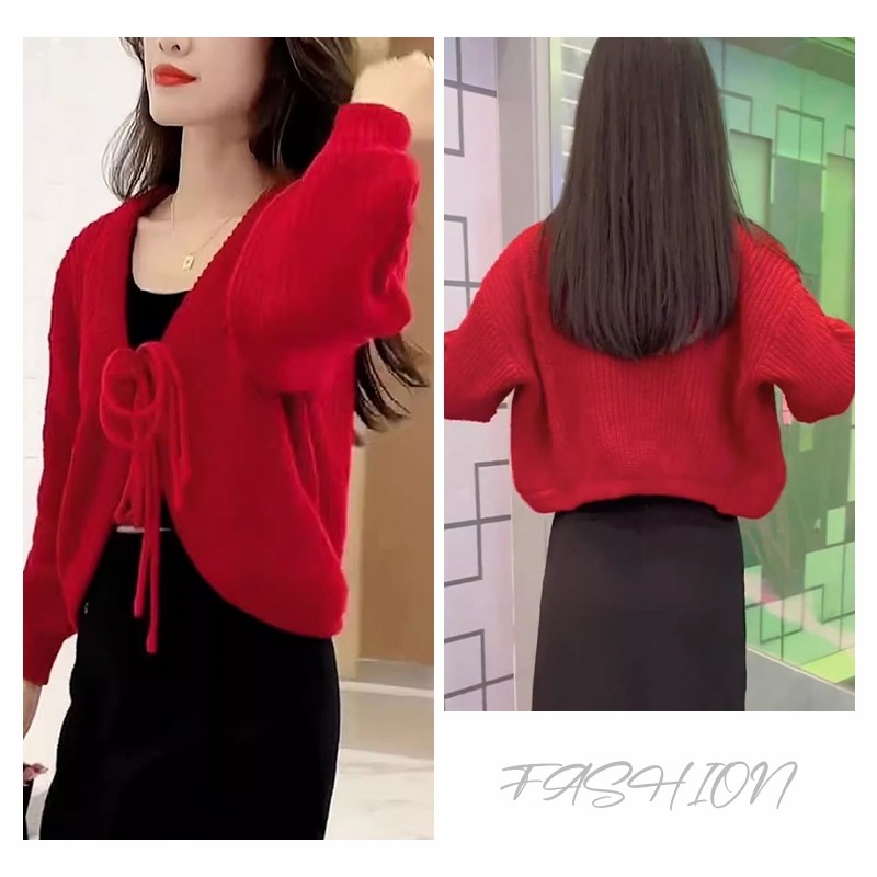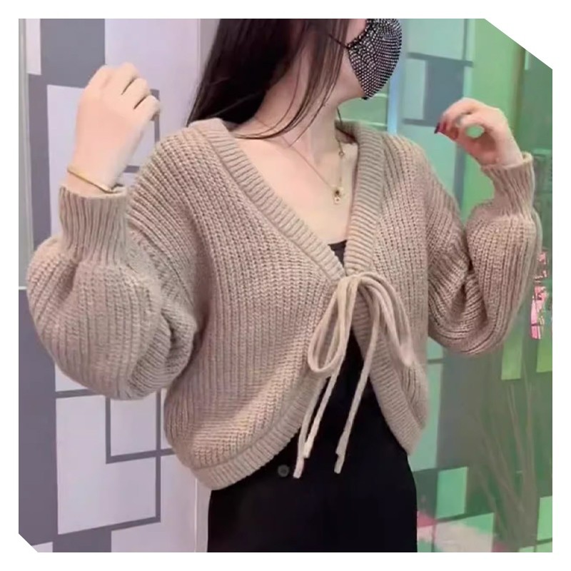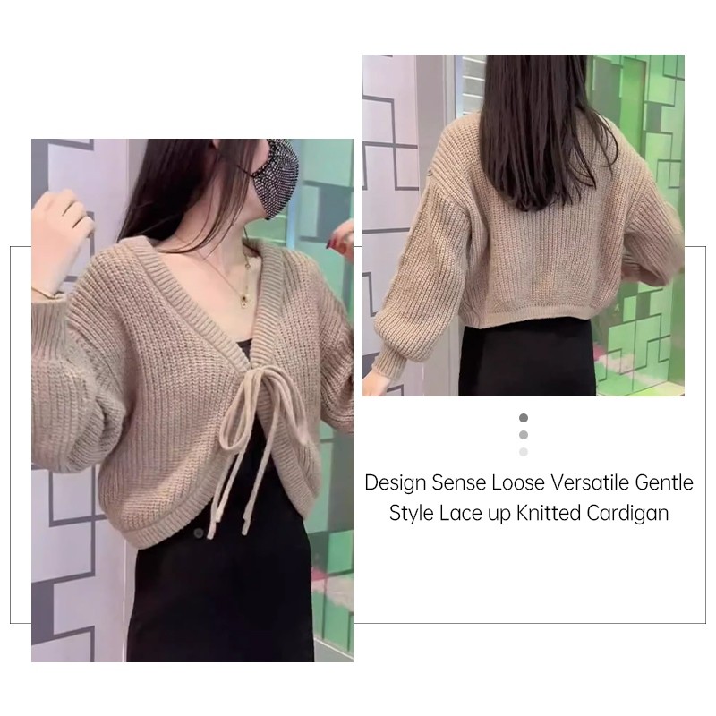 【Malaysia stock】Design Sense Lace-up Knitted Cardigan Loose Versatile Gentle Style Amika1