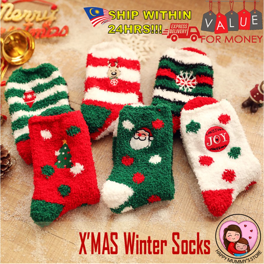 [MALAYSIA STOCK]Fluffy Socks Christmas Socks Confinement socks Bed Socks Cozy Cute Winter Socks for Women