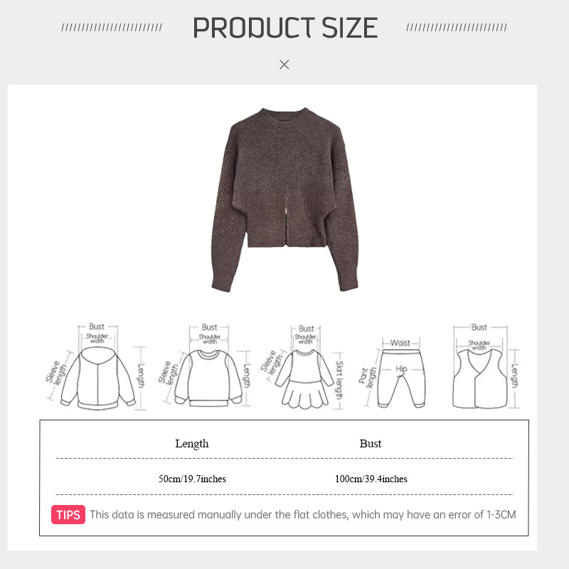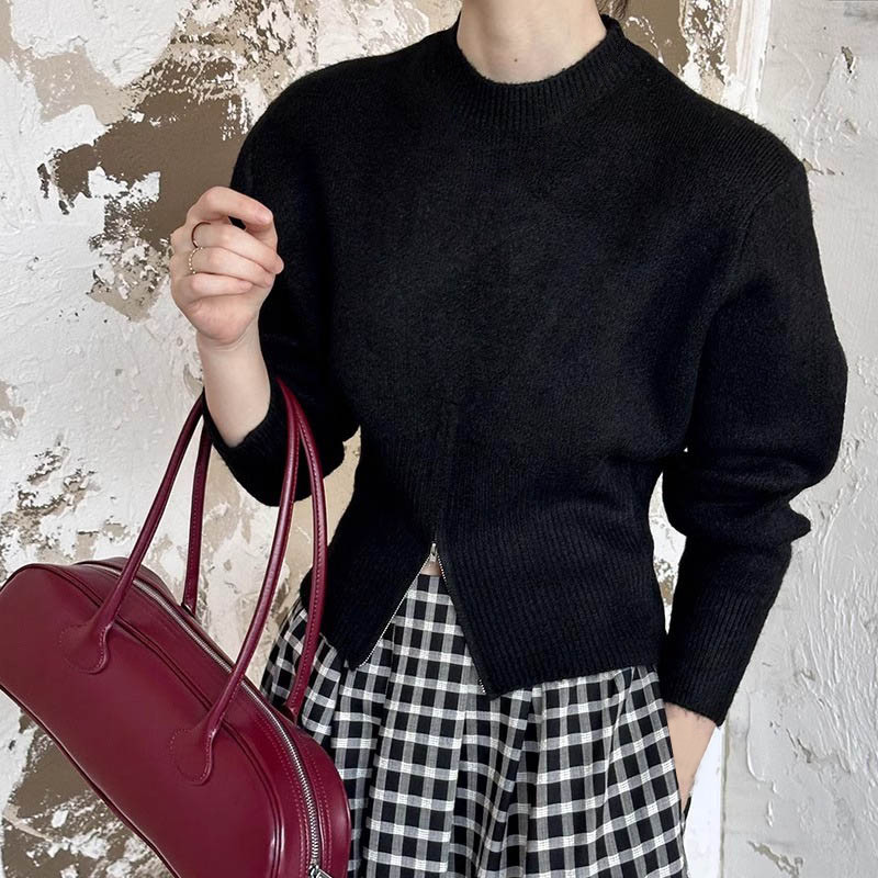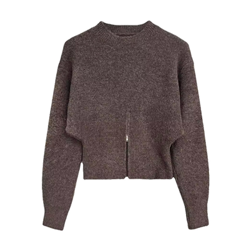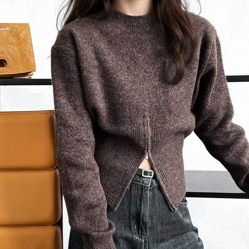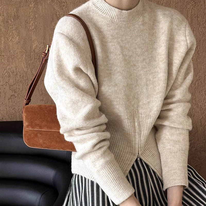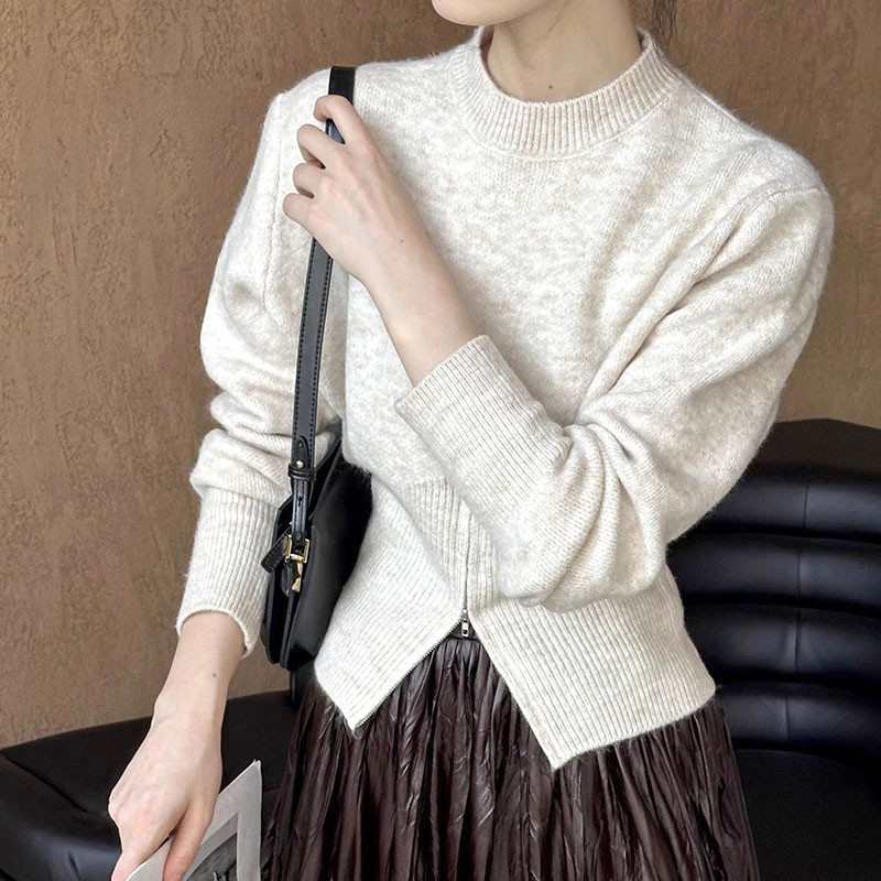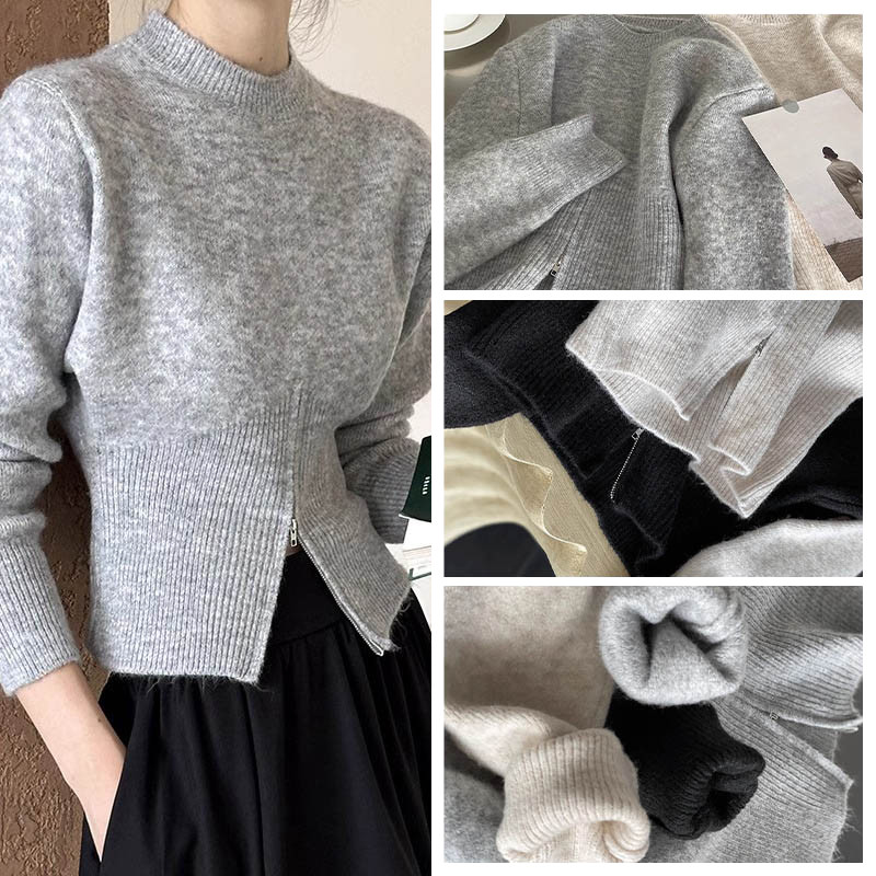 [Malaysia stock]SL Zipper Long Sleeved Knitwear Loose Solid Color Sweater Women Niche Versatile Knitwear Top